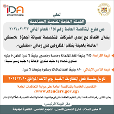 الهيئة: الهيئة المصرية لتطوير الصناعة الموقع: القاهرة الدور: تراخيص صناعية – دعم تقني