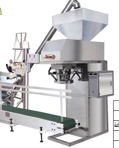 معروض للبيع خطوط تعبئة بودر في شكائر اوتوماتيك مصنوع من الاستانلس ستيل القدرة 2 كيلو وات مجال التعبئة: 10 – 50 كيلو جرام