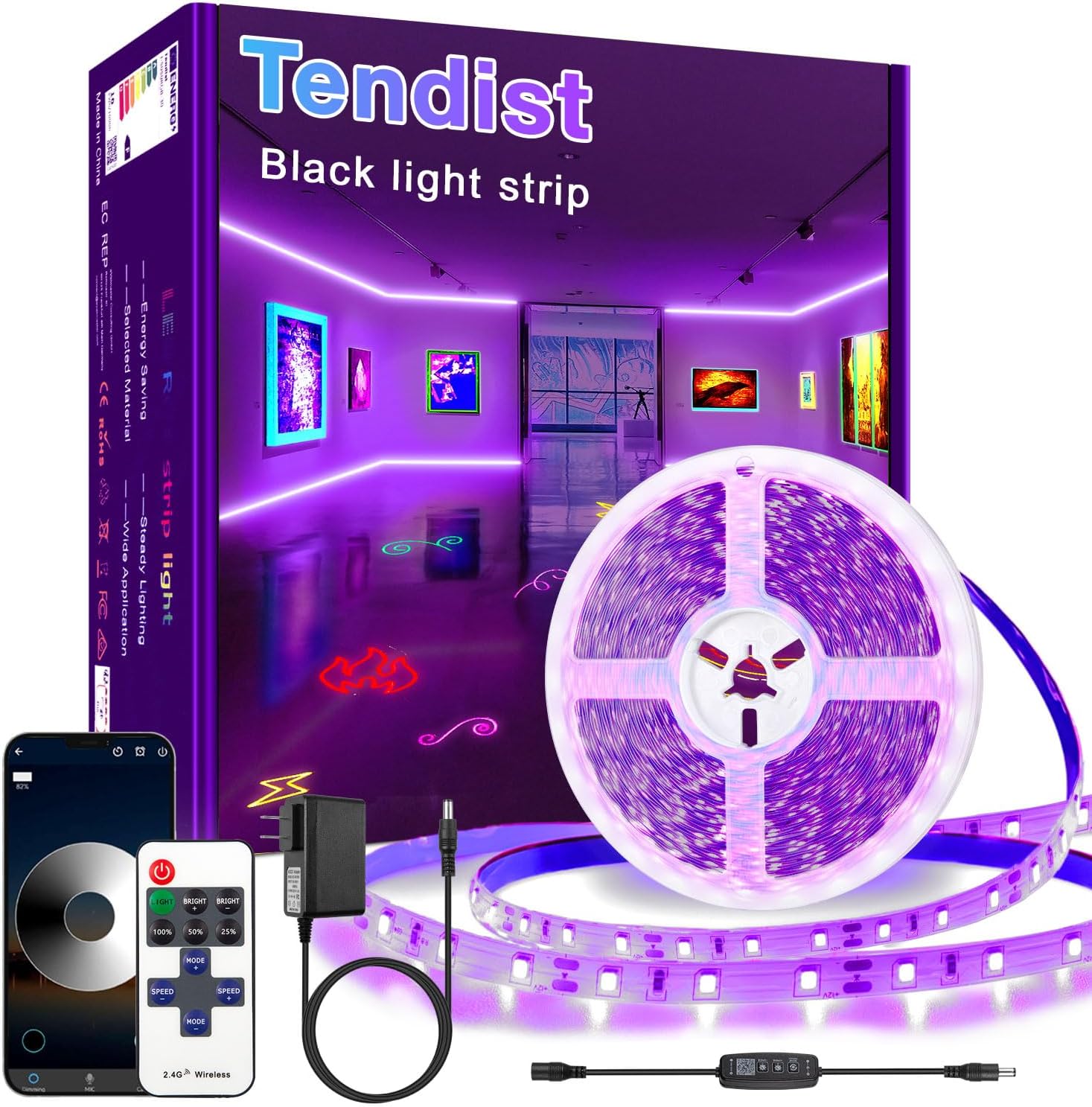 | Included Components | 1* 24v adapter, 1* remote 2.4g pairable, 1* smart controller, 2 * 57.5ft black led strip, Securing clips and user manual |