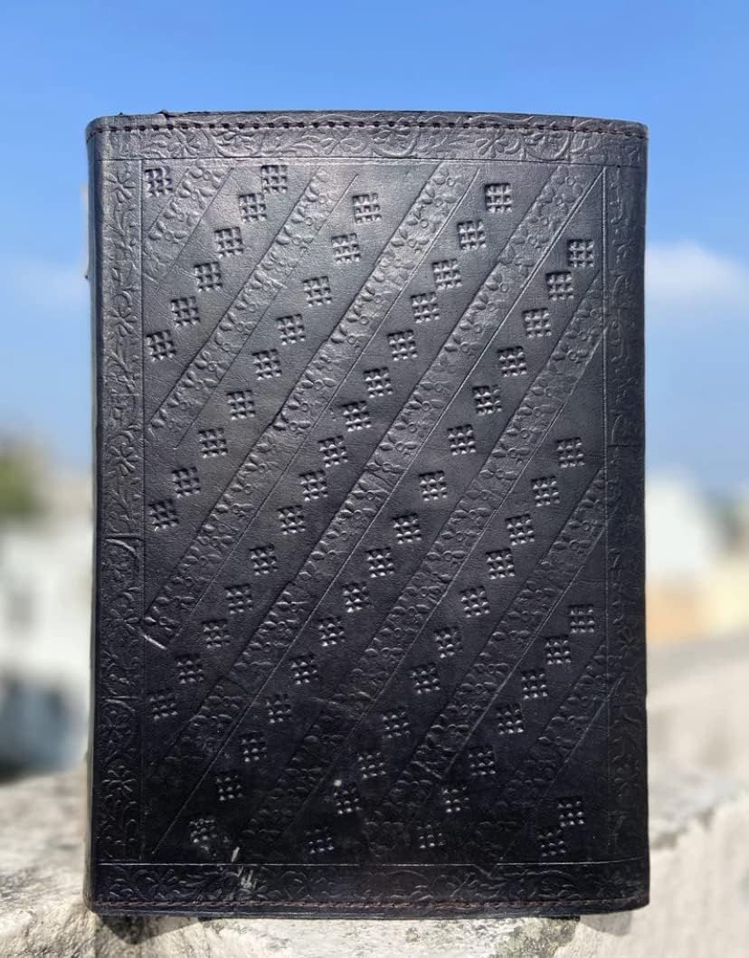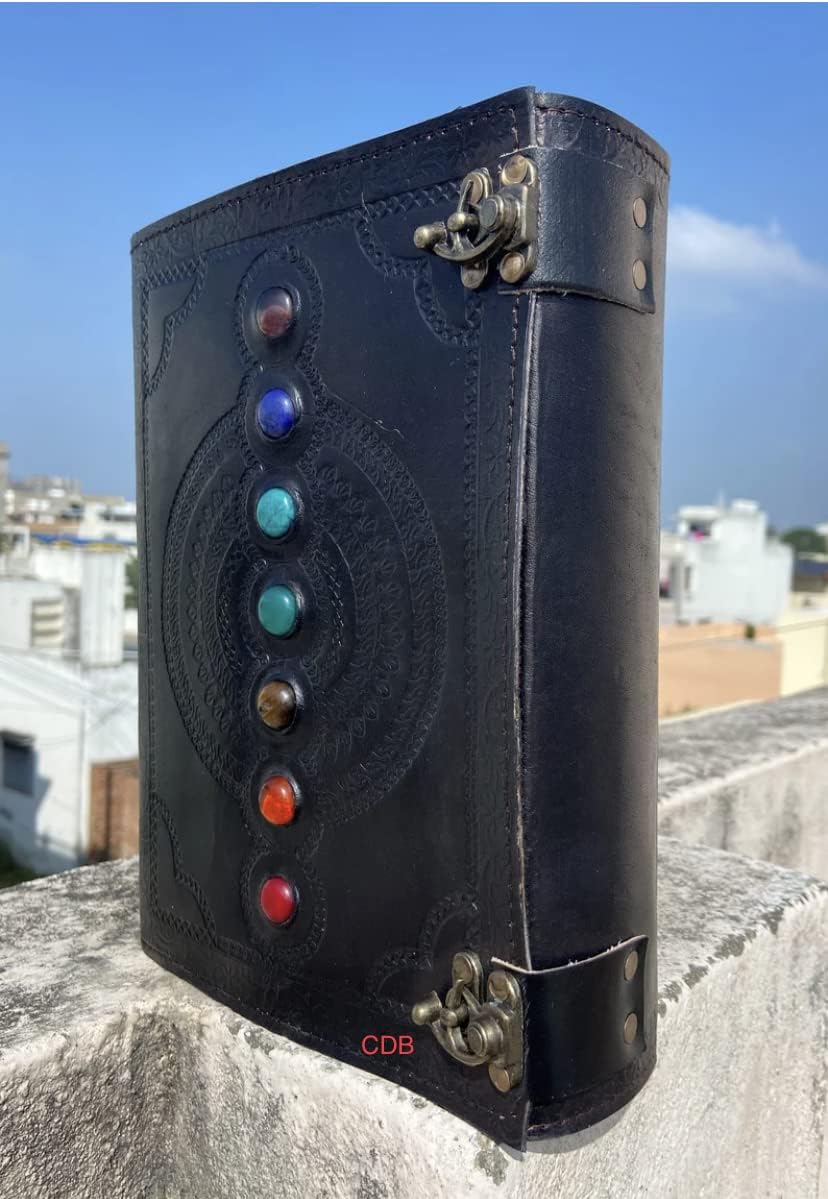 Seven Chakra large Leather Journal -Height-10, Length-7, Width-2.5 Inches =Note-550 pages Counting on Both Sides (275 Pages) Counting On Both Sides( Note 275 Sheets) Which you will note have to Change your journal Soon Because of 550 pages will give long time If you count on Both sides(550 Pages) and If you count Sheets=275 Sheets =Weight-1.5 kg =Colour-Brown =Handcrafted by Skilled artisans using 100% Genuine Leather & Recycled Paper. =Handmade Leather Journal. Unlined Paper counting both sides. Suitable for all pens and pencils. The book can be used for writing, drawing, sketching etc. Ideal gift for writers, poets, artists etc. =Perfect size to carry in your bag, preserve those special ideas/ thoughts with this beautiful handmade journal from Cure De BolsoStrong Brass Metal Closure C Lock to keep Journal Closed. This old-fashioned character leather has an amazing smell !Can be used as a notepad, Journal, Writing Notebook, sketchbook. thickness, easy for handwriting, drawing or sketching and compact for carrying in your bag. Ideal for alternative Artist Sketchbooks, Photo Album, Traveling Notes, Business Executive, Logbook, Poetry Work, Journalists, Food Planner, and Bible Journalism., white paper, hand-crafted with cotton which is acid-free & tree-free! Perfect size and Hand cut leather. The journal is handcrafted by Skilled artisans using 100% Genuine Leather., hand-crafted with cotton which is acid-free & tree-free! =Strong Brass Closure to keep Journal Closed =Handmade Seven chakra to make the cover more beautiful./ leather journal diary | embossed large seven Chakra notebook | writing leather notebook | handmade leather journal | leather grimoire | leather sketchbook 7 x 10 Thread Bound