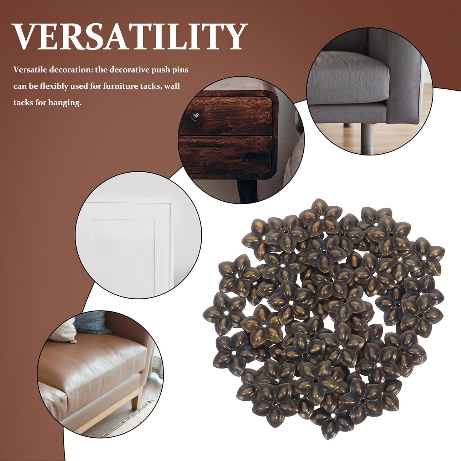 Package Include 100 x Upholstery Nail Tacks 100 x Nails Pins Characteristics -Easy application: with their userfriendly design, these tacks for wood and fabric are simple to install, making them for DIY projects and professional use sofa nail -Upholstery Nail Tacks: the gold upholstery tacks boast a polished, ensuring they remain visually appealing and functional for years furniture nails for upholstery -Color:Coffee -Unique decorative appeal: the sofa decorative tacks feature a distinctive design, adding a vintage and artistic touch to furniture, crafts, or wooden boxes upholstery tack nails -Size:2.30X2.30X0.30cm/0.90X0.90X0.12in -Wide range of uses: ideal for furniture decor tacks, wall tacks for hanging, or decorative nails for wood, these versatile pins meet diverse creative needs large upholstery studs -Reliable durability: these upholstery nails tacks are built to last, resisting daily wear and maintaining their decorative charm over time furniture decorative tacks -Product Info: Decorative nails -Material:Zinc alloyGoods Descriptiondecorative push tacks Our decorative tack nails set includes beautifully designed plum blossom tacks, ideal for enhancing the look of your furniture and home decor.furniture tacks for upholstery Made from sturdy metal, these upholstery tacks are built to resist everyday wear and tear, ensuring longterm beauty