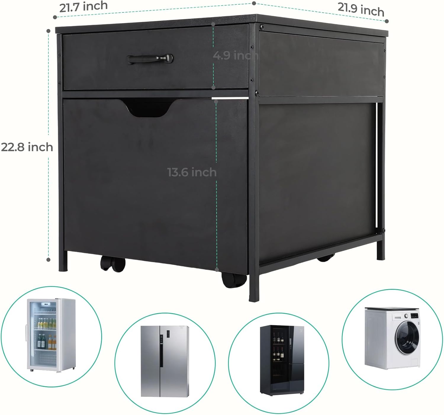 Dollate 22.x 21.7 Inch Mini Fridge Stand with Storage, Heavy Duty Metal Frame Mini Refrigerator Stand Suitable for Dorm, Home, Office, Kitchen, Load Capacity 220LBS