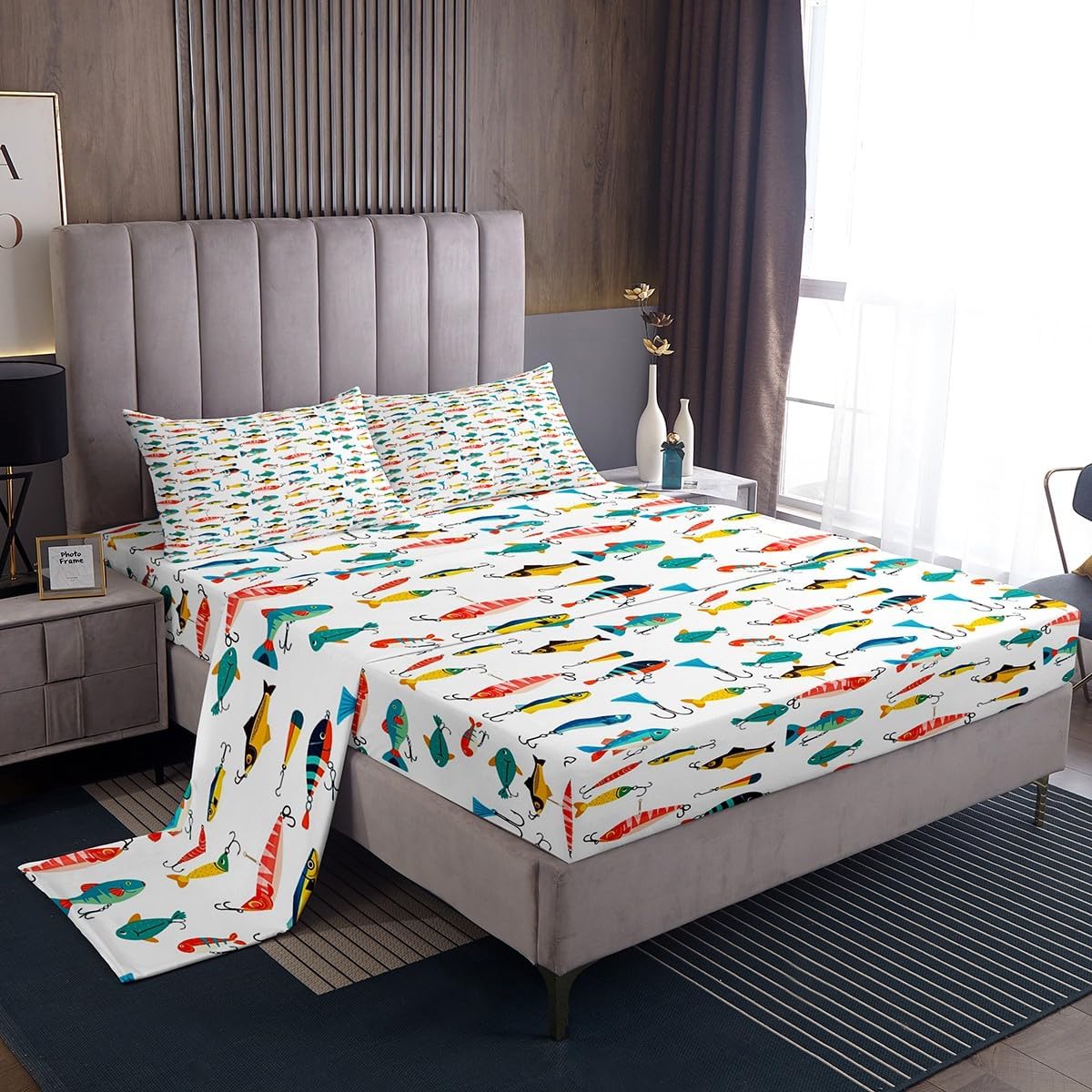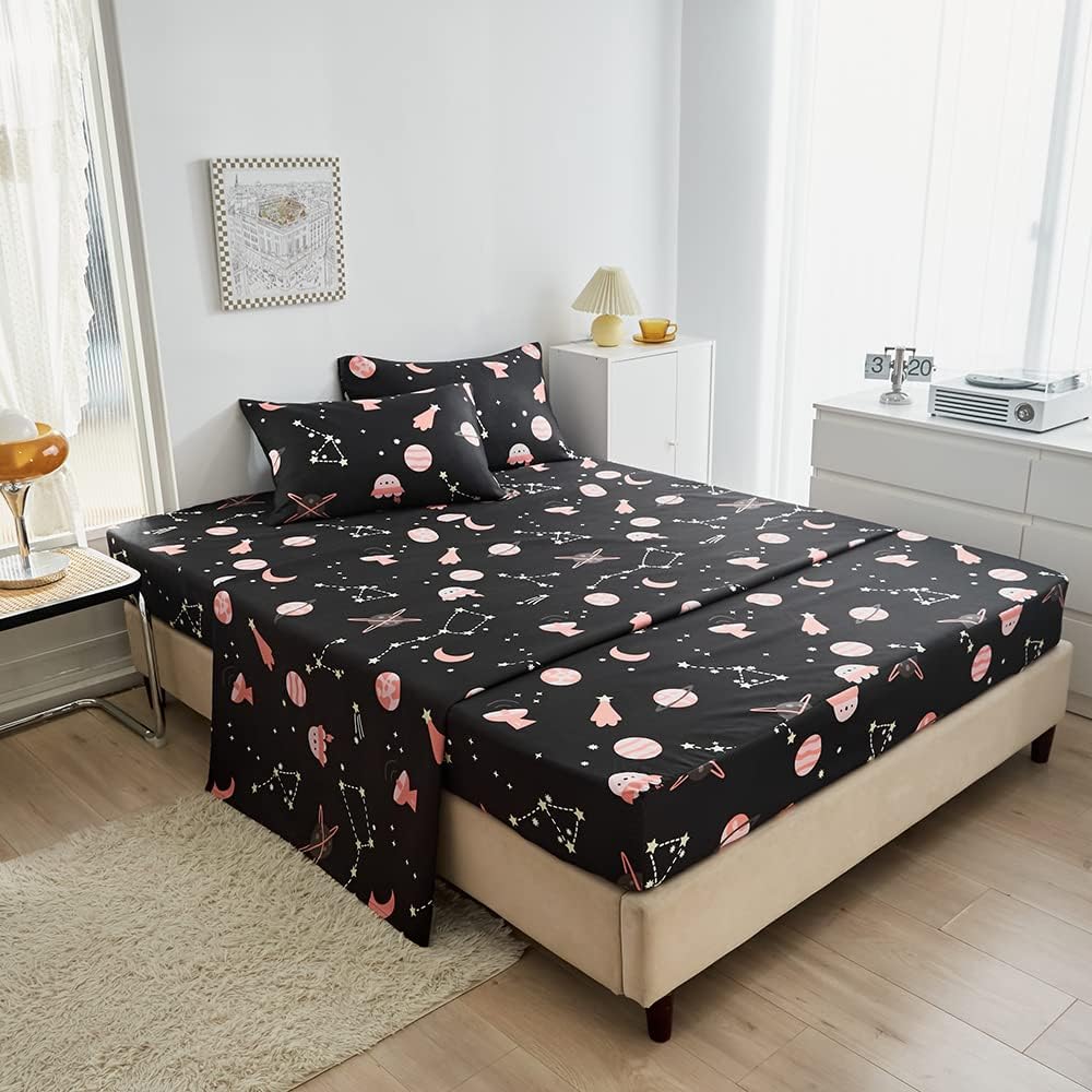 Our bedroom decor bed sheets set look with the vivid stylish and elegant print specifications: Twin Sheet Set: 1 twin fitted Sheet 39 inch x75 inch x16 inch, 1 twin flat sheet 66 inch x96 inch and 1 pillowcase 20 inch x30 inch Full sheet set: 1 full fitted sheet 54 inch x 75 inch x 16 inch, 1 full flat sheet 81 inch x 96 inch and 2 pillowcase 20 inch x 30 inch Queen sheet set: 1 queen fitted sheet 60 inch x 80 inch x 16 inch, 1 queen flat sheet 90 inch x 102 inch and 2 pillowcase 20 inch x 30 inch deep pocket fitted sheet with elastic all around materials: microfiber fabric, lightweight and soft design: With vibrant and novelty designs and 3d print technique, this duvet cover is very suitable as room decor for boys and girls care instructions dry clean preferred; machine washable, use cold water on gentle cycle, tumble dry low