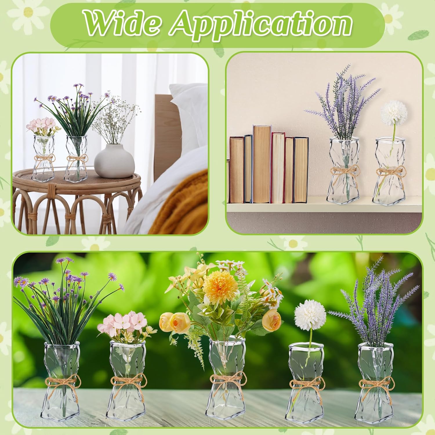 Features: Exquisite gift: The small glass flower vase is an ideal gift for family and friends, combining practicality and ornamental value. Whether it is a birthday, housewarming or holiday blessing, Valentine's Day, Thanksgiving, wedding, anniversary and birthday, the recipient will definitely appreciate its elegant design and versatility. Center decoration: Our flower vases for centerpieces can add brilliance to any space! Suitable for tables, bookshelves, windowsill in your home, office, hotel or restaurant, and can also be applied as decorations for weddings, parties, banquets, bridal showers, graduations, proms, anniversaries, housewarming and other events. Specifications: Material: glass Color: clear Size: 5.9 x 2.4 x2.4 inches/ 15 x 6 x 6 cm Package includes: 12 x Glass vase Notes: Manual measurement, please allow slight errors on size. The color may exist a slight difference due to different screen displays.