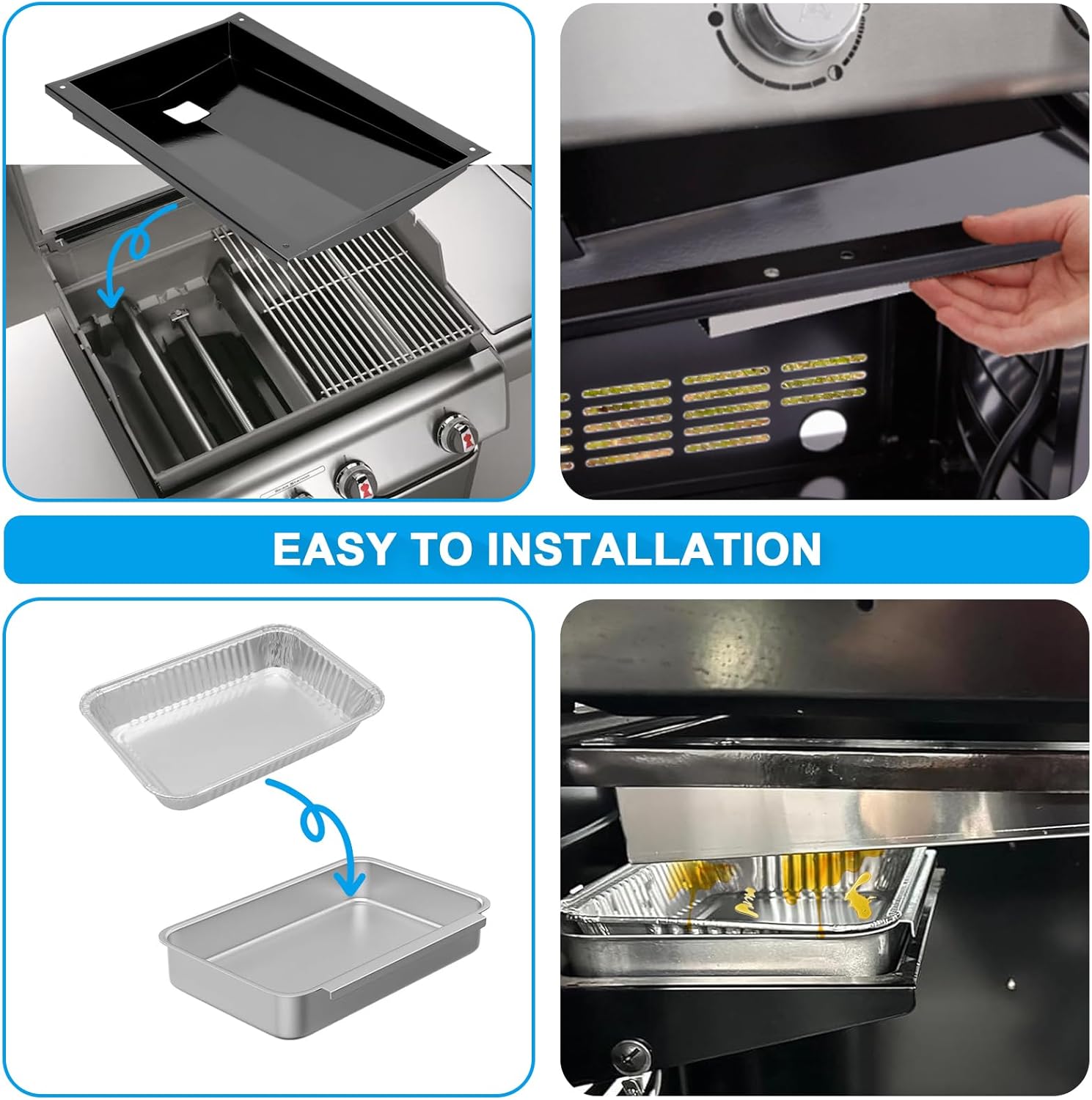 【Compatibility】Grill Grease Tray Replacement for Weber Genesis 300 Series 310, 320, 320 (2011-2016) with Front Control Knob Grills.Grill Parts for Weber Genesis 300 Series E310 E320 E330 S310 S320 S330.NOTE:NOT fit for Weber Genesis 300 (2007-2010) with Side Control Knobs【Applicable Model】Replacement parts for weber Genesis CEP-310, CEP-320, CEP-330, E-310(Model 2011-2013 ), E-310(Model 2014), E-320(Model 2011-2013), E-330, EP-310, EP-320(Model 2011-2013), EP-330, PREMIUM CEP-330, S-310, S-330 【Package Includes】1x Grease Tray(Size:19.6" x 14.2" x 3.2") ,Replace for weber 62757; 1x Catch Pan(Size:8-5/8" x 6-1/8"),replace for weber 7515 and 10x Aluminum Foil Liner(Size:8.6" x 6" x 1.5" each),replace for weber 6415, 306415 & ES16-GM-AF103. TIP: Please measure your current grease tray size to ensure you are ordering the correct grease tray