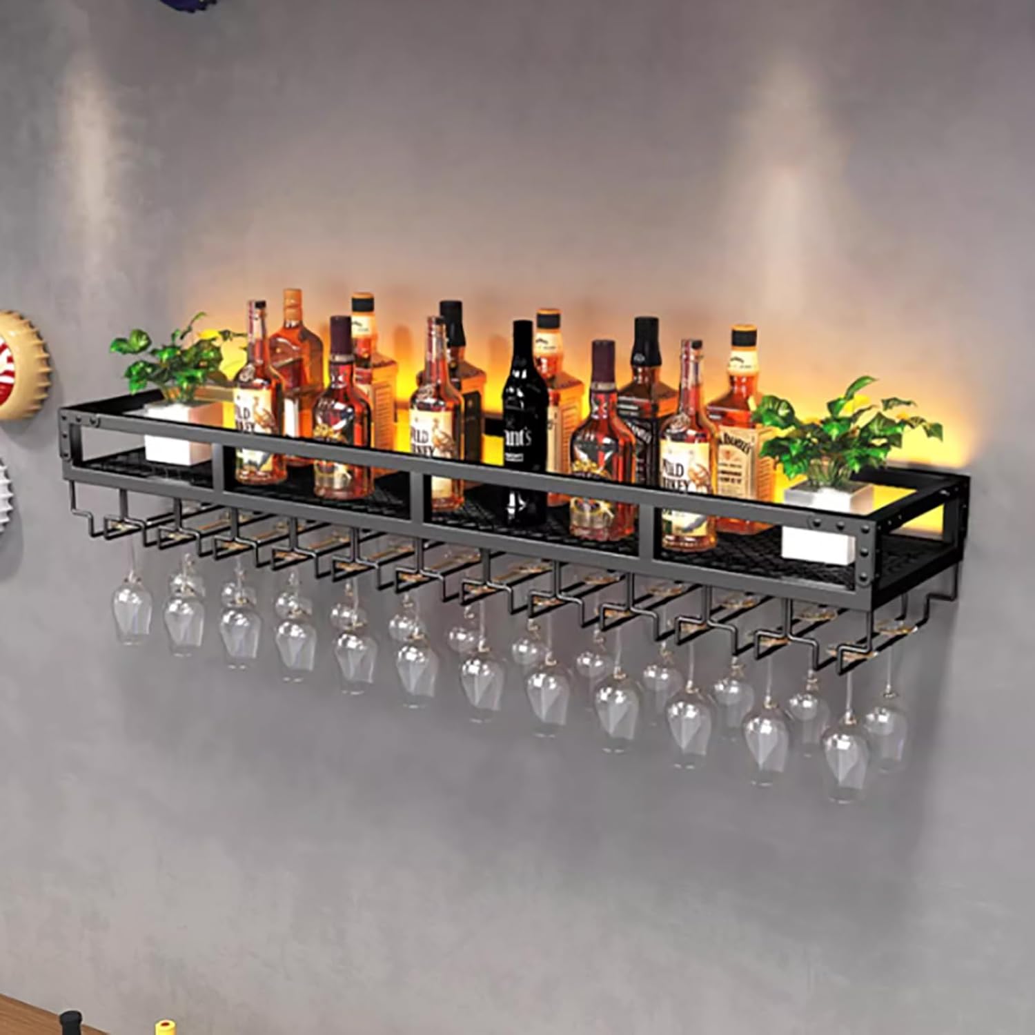 Durable materials: The wine rack wall mounted is made of forged iron, with strong bearing capacity, stable and durable structure, not easy to deform after high temperature baking, rust-proof and easy to clean. The wall shelf/wine rack has a long lifespan.