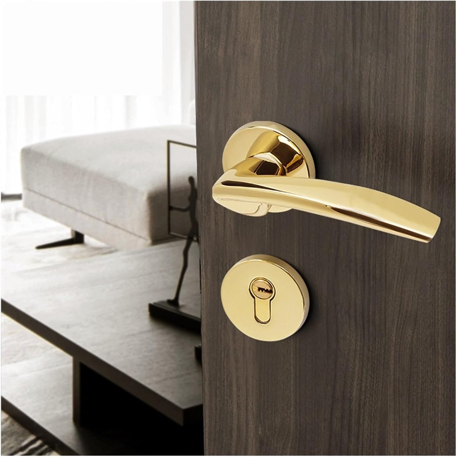 LocksGate LatchesType: handle lockScope of application: Indoor wooden doorsSpecifications: Type A PVD platingStyle: modern simpleLock cylinder: small 70 lock cylinderLock body configuration: 5845 mechanical silent three-prong lock bodyCross-border package weight: 1.75kgUnit weight: 1.75kg