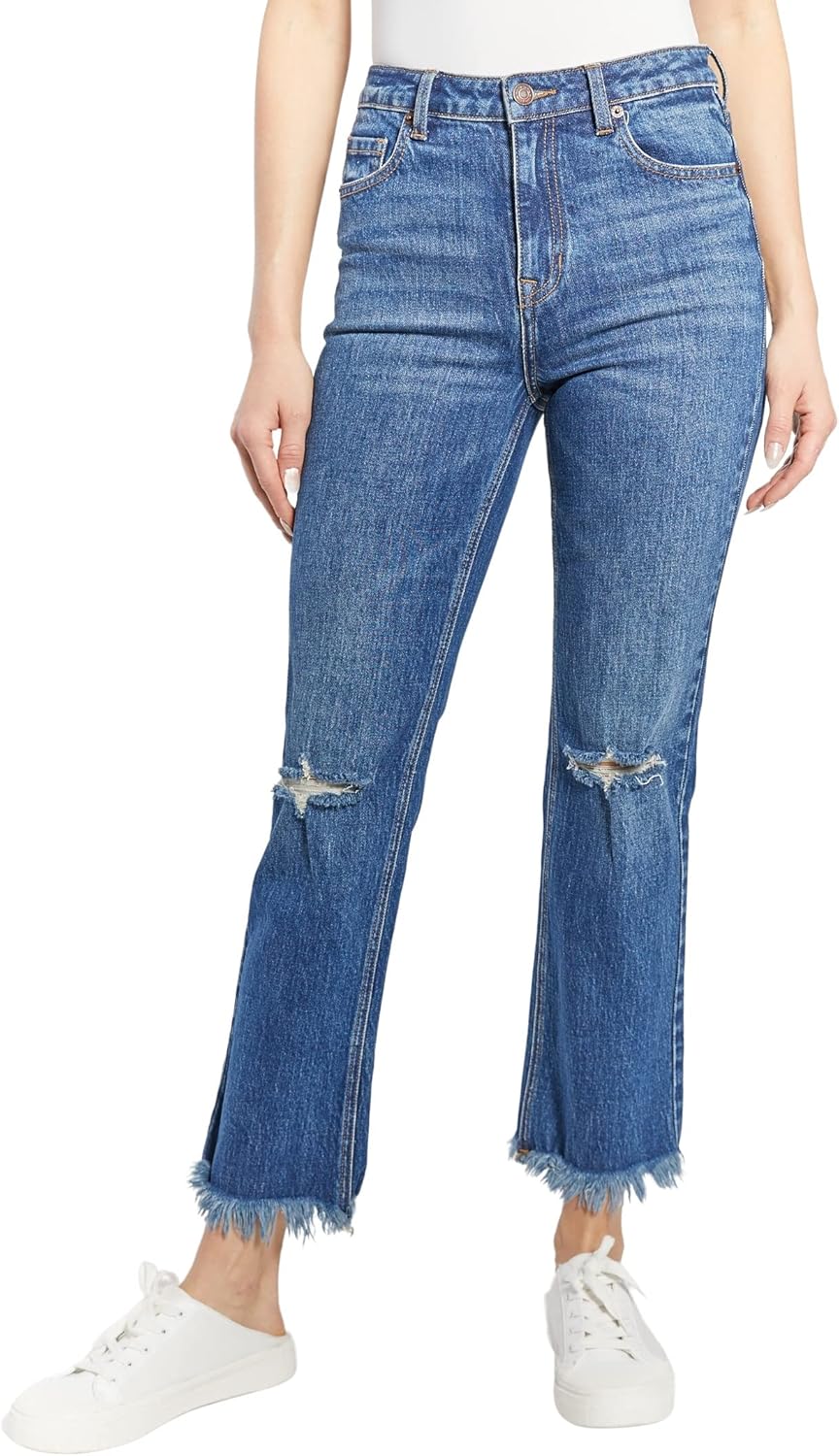 | Model Name | High Rise Straight Relaxed Denim Jeans, With Knee Destruction and Five Functional Pockets |