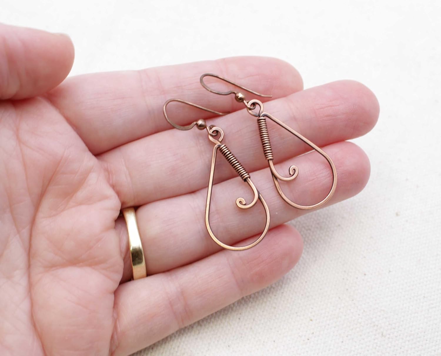 These earrings are handcrafted from solid copper. They are quite light and have been antiqued for a vintage, rustic look. The teardrop shape is 1.25" long. Because each pair is handmade, please expect slight differences from those shown in the photos. An original Pillar of Salt Studio design.