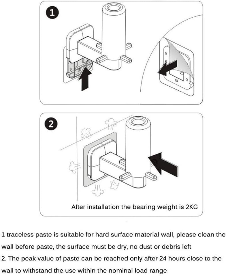 for vertical paper design for multiple sizes of roll paper.The wall is installed without a trace, no space, no need to punch.Easy paper delivery and easy access.Suitable for wall glass, ceramic tiles, painted wood panels, metal panels, PVC panels, marble, polished tiles, etc.Not suitable for wallpaper, embossed wall surface, mortar powder wall, cultural stone, etc.Material: plasticInstallation method: no trace installation (no need to punch)Paper towel holder*1free-standing toilet paper holder is made of metal and coated with a black finish, which ensures that it is rustproof, anti-scratch, and for long-term use. It would neither get tarnished nor deform easily. In addition, you can clean it effortlessly by wiping it with a damp cloth and letting it air dry
