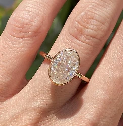 Elevate your jewelry collection with this stunning 3 Ct oval cut lab created diamond ring from Purvika Jewels. The exquisite bezel setting, crafted in sterling silver with a luxurious 14K yellow gold finish, creates a modern yet timeless look. The sophisticated design showcases the brilliant oval cut stone, while the bezel setting ensures secure placement and enhanced durability. Perfect as an engagement ring or statement piece, this ring combines contemporary elegance with classic appeal. The sterling silver construction provides lasting quality, while the 14K yellow gold finish adds a warm, rich tone that complements any style. The lab created diamond offers exceptional brilliance and clarity, making this ring a remarkable choice for those seeking both beauty and value.