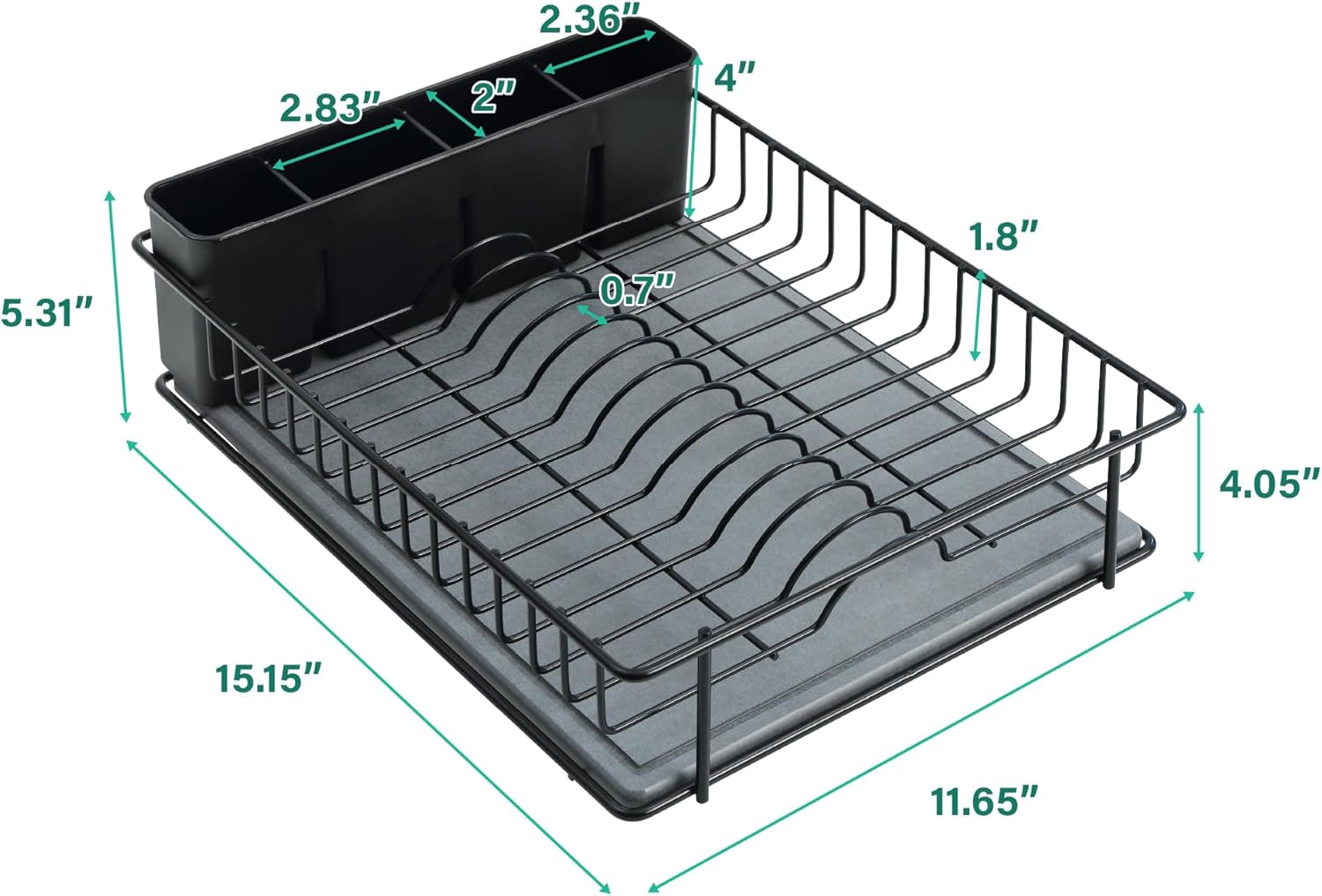 SunnyPoint 304 Stainless Steel Dish Drying Rack with Diatomaceous Earth Drainboard & Removable Utensil Caddy – Rust Resistant Countertop Dish Rack for Kitchen (Black)