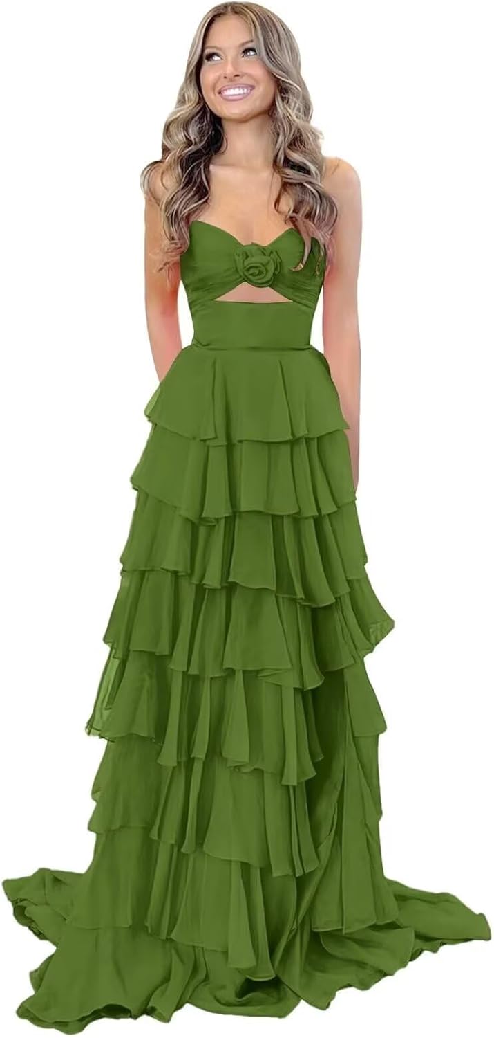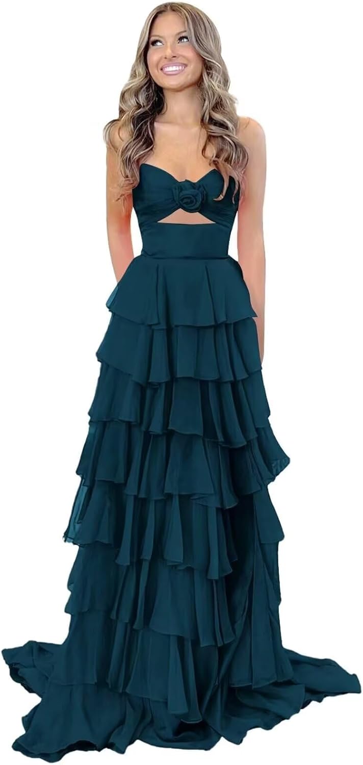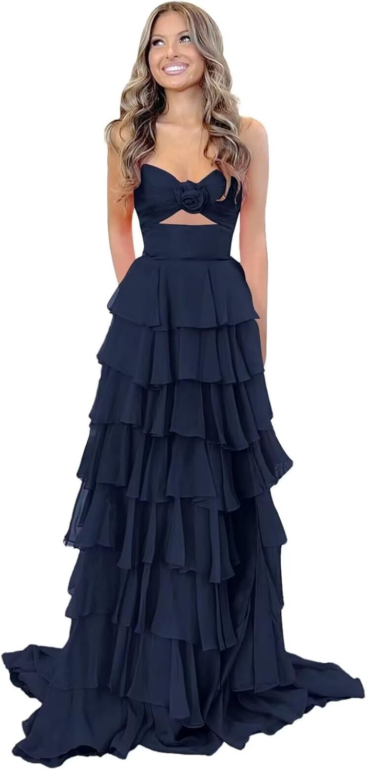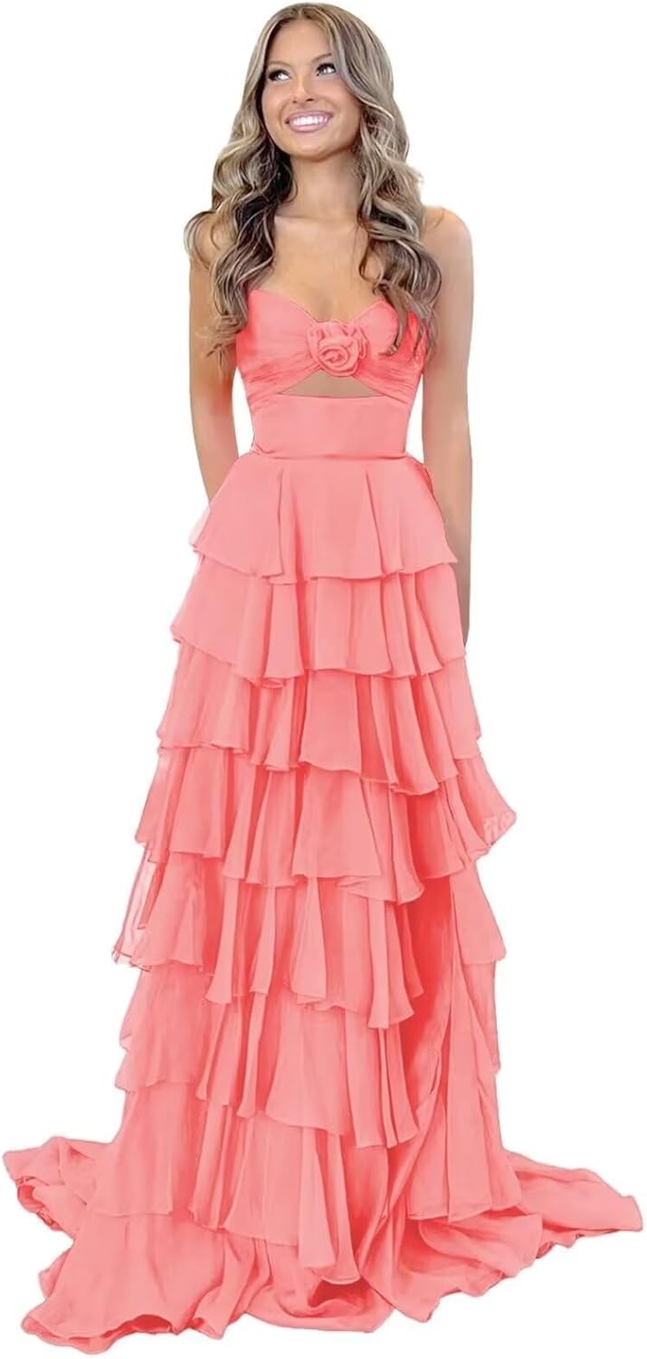 | Fabric Type | Tiered Chiffon & 3D Flower Keyhole Prom Dresses Long |