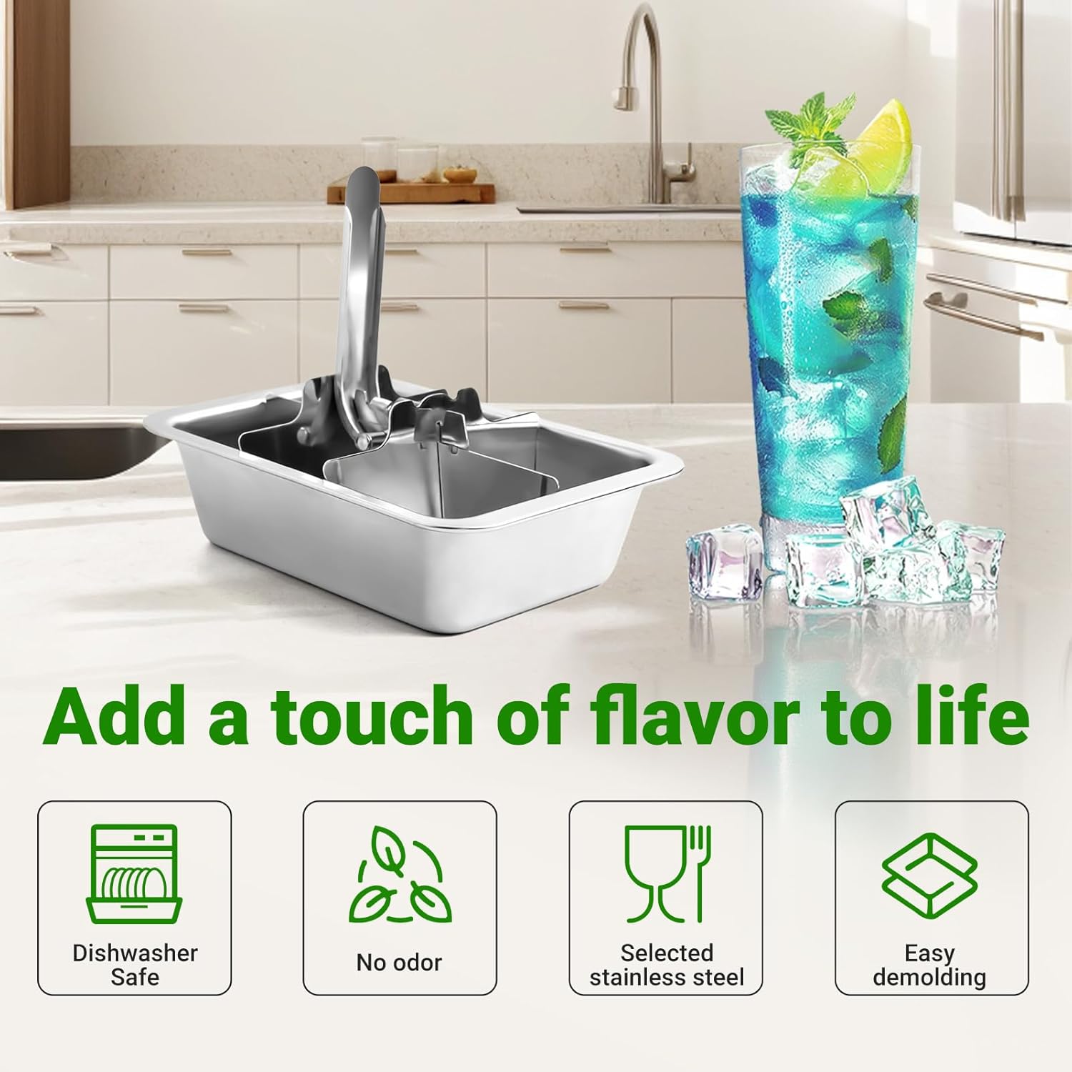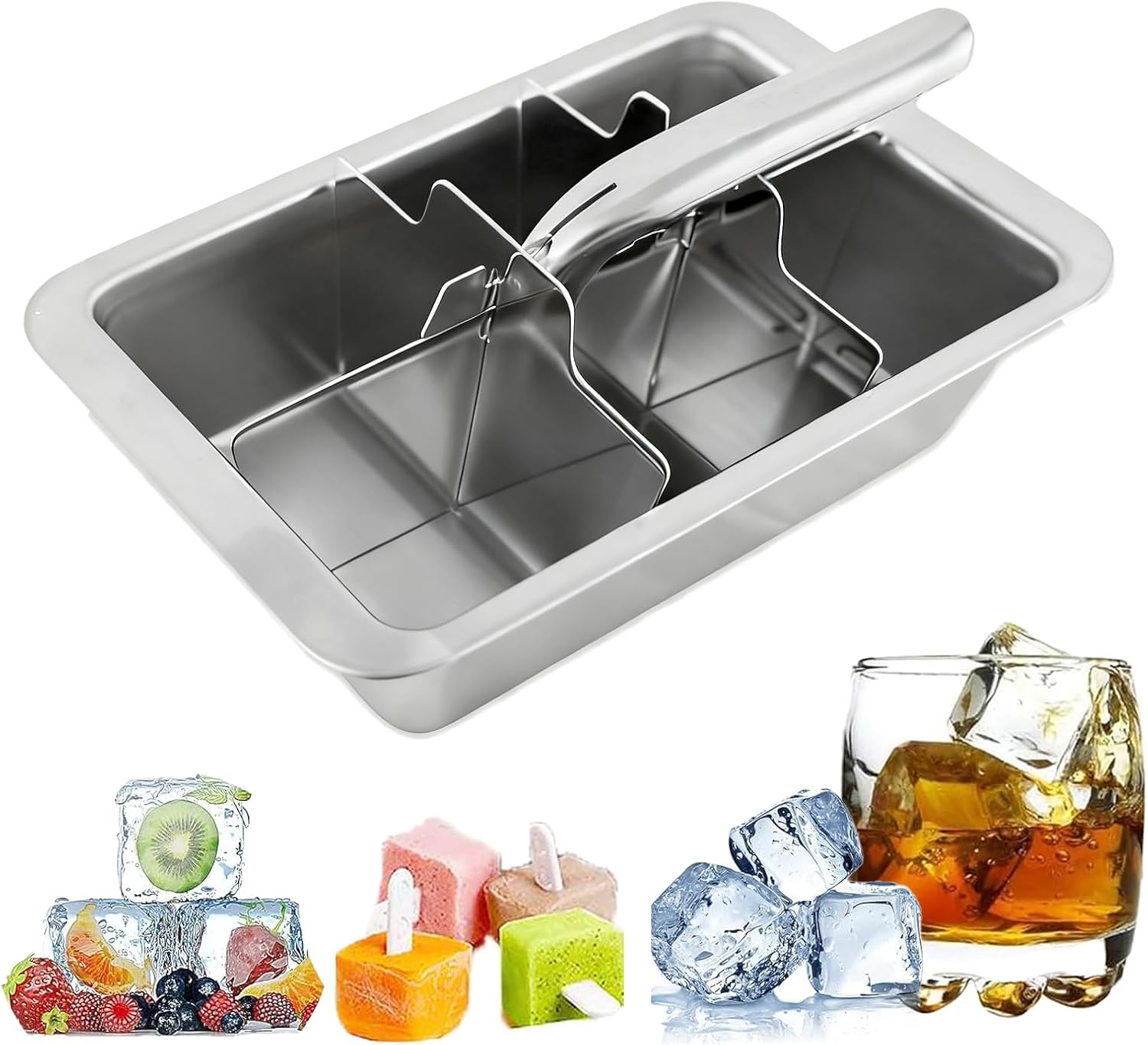 Specification:Product Name:Stainless Steel Ice Cube TraysColor:SilverMaterial:Stainless SteelPacking List:1xstainless Steel Ice Cube