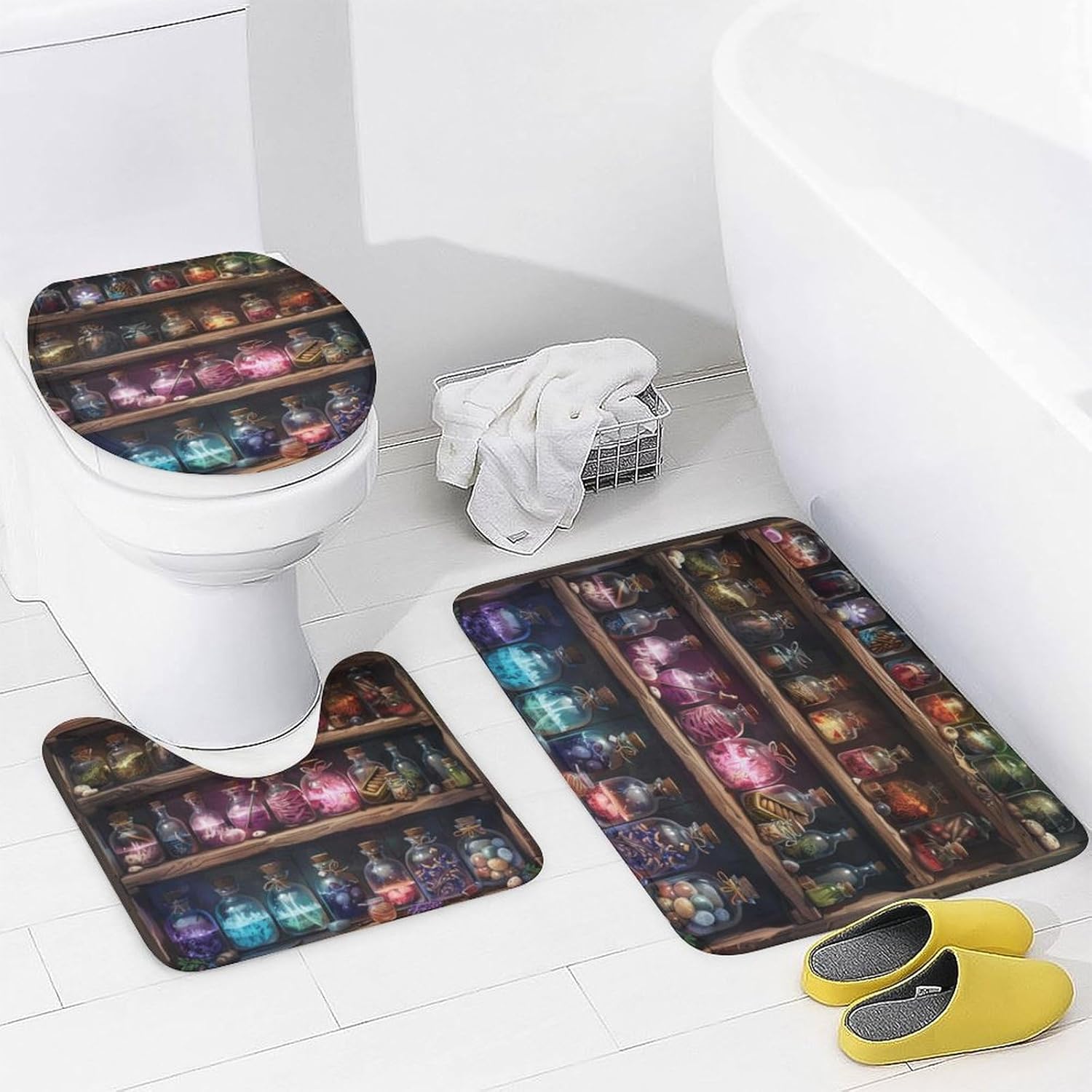 TOWINSFB is committed to creating a better bathroom and a warmer home for youA better home and a better life are our eternal goals. We believe that your bathroom should be a place of comfort and relaxation, a sanctuary where you can unwind and rejuvenate after a long day. TOWINSFB shower curtain sets with rugsOur curtains not only can bring you a different visual experience, but also bring a warm feeling to your bathroom. Taking a bath in the bathroom is like entering the world of shower curtain patterns, which can wash away the fatigue and troubles of the day. Package IncludingShower curtain size:72"Lx72" W, O shape toilet lid cover size: 18"Lx16"WNon-slip flannel bathroom mat sizes: 30"L x 18"WU shape rug sizes: 20"L X 20"W. This shower curtain set has been enlarged in size and thickened thickness, which is suitable for most family bathrooms.Warm Tips It's OK for machine wash, hand wash or wiped by damp cloth Wash the shower curtain in water below 30℃, Ironing within 100℃ Do not tumble dry, dry clean, or bleach Please allow a deviation of 1-2cm due to manual measurement. Due to the different display settings of the computer, the colors may be slightly different