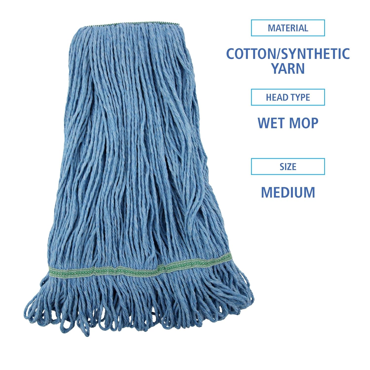 Boardwalk® Super Loop Wet Mop Heads are created from premium-quality, four-ply cotton/synthetic yarn for maximum absorbency. The industrial strength mop head is designed for high-volume use. Each head absorbs up to seven times its own weight in liquid. Constructed to be more durable with heavy-duty, vinyl headbands. Machine washable. Launder in mesh bag. Use with clamp or spring grip-style handles, which are sold separately.