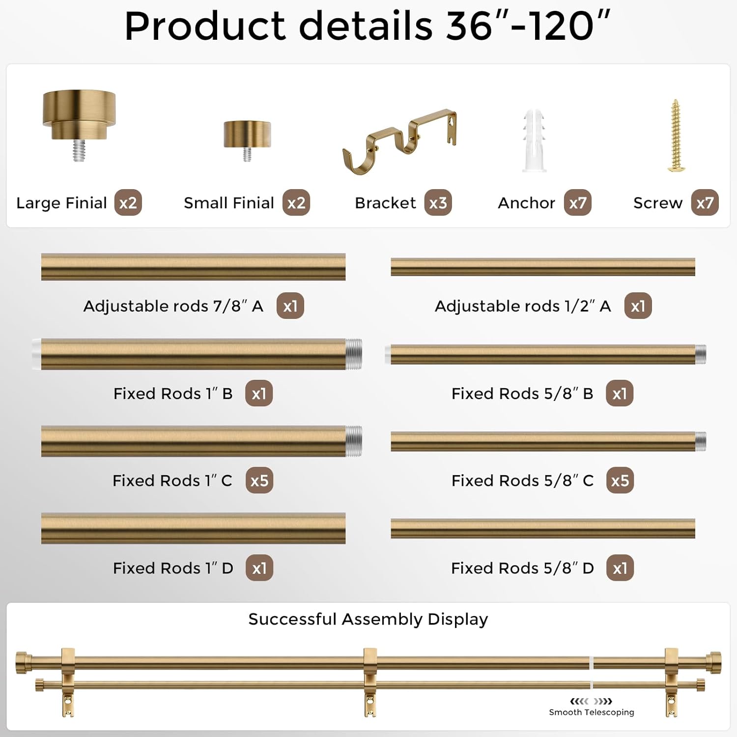 | Included Components | Anchors, Brackets, Curtain rod decorative head, Rods, Srews |