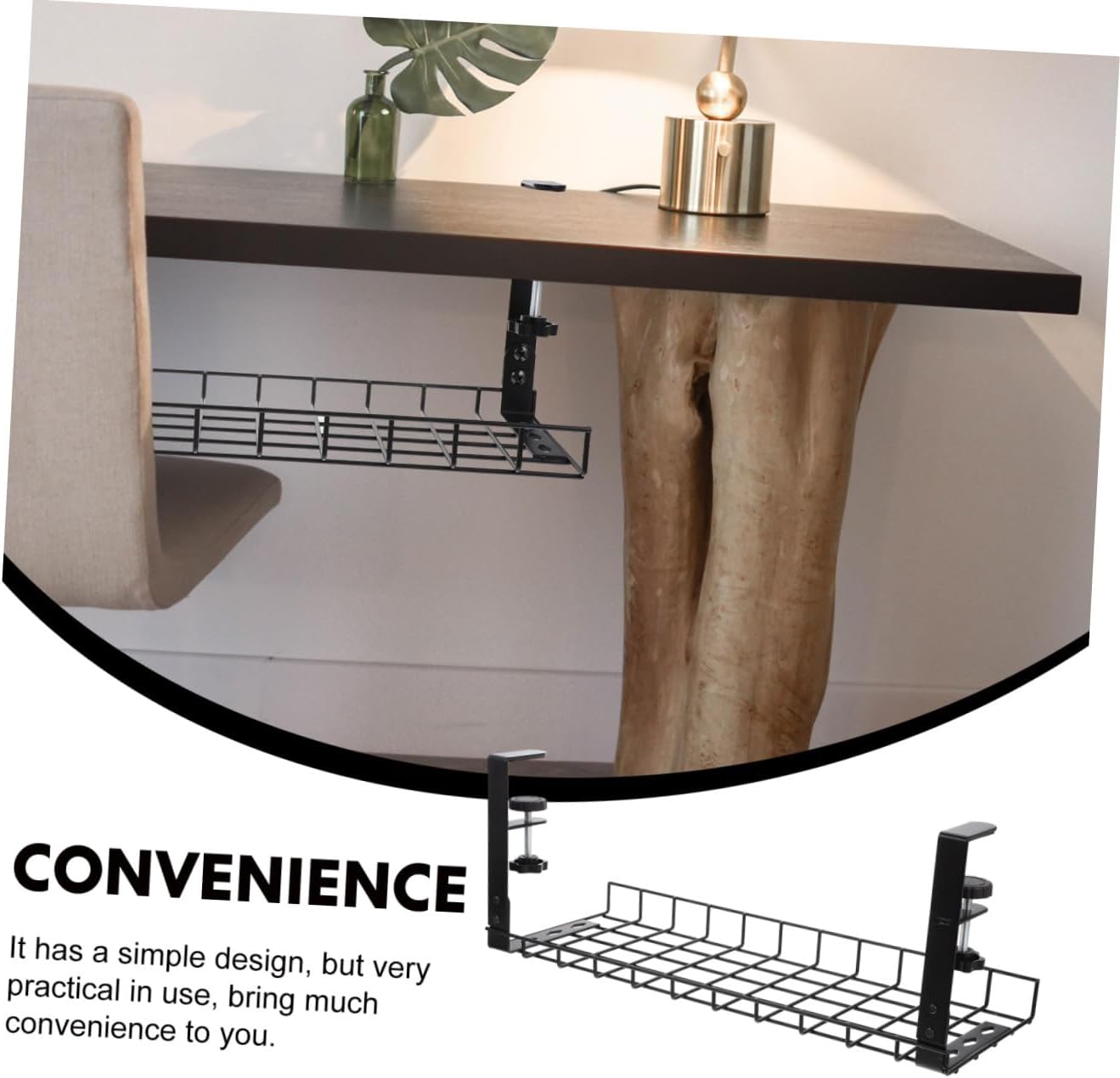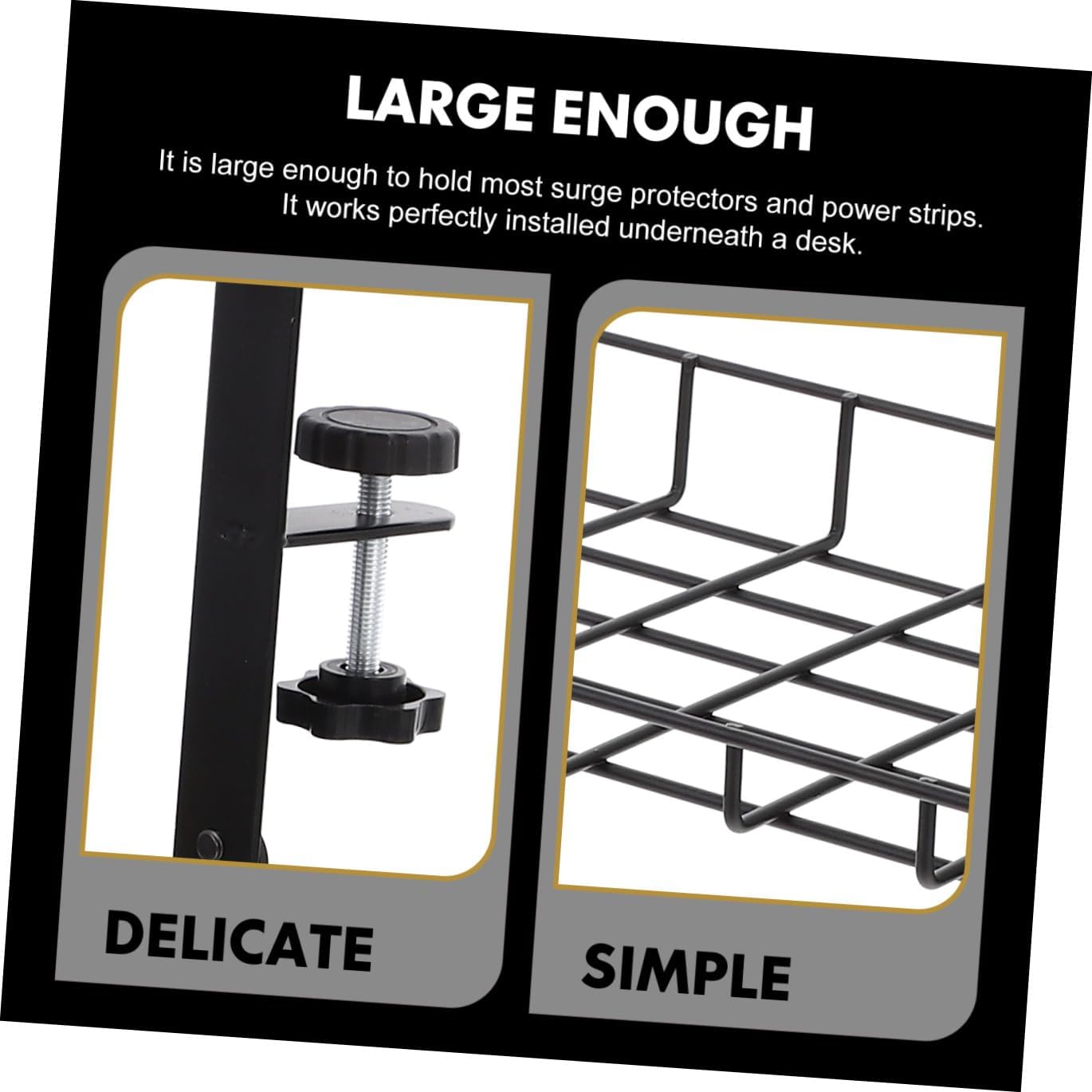 Package Include 1 x Cable Management Tray Characteristics - Note: Adjustable, suitable for tables with thickness of 1-5cm desk cable management tray - Size: 50.00X19.50X19.00cm/19.65X7.66X7.47in -Product Info:Wire storage rack - Color: Black - Material: Steel - The item is manufactured with for durable and reusable use. - The under desk rack has a compact size design to be mounted even under a desk. - Keep your cluttered power cords, adapters, and USB hubs clean and make your desk tidy cord keepers for cables. - It has a simple design, but very practical in use, bring much convenience to you cable organizer under desk. - It is large enough to hold most protectors and power strips. It works perfectly installed underneath a desk under desk cord organizer.Goods Descriptionwire organizers for cords This premium and sturdy under desk cord rack is made of steel material, durable and practical enough to use.under desk cord organizer Owning good workmanship and delicate details, suitable for home, office, etc.under the desk cable management Designed to help you to organizing the wire, cable and other cords, make your room more tidy and clean