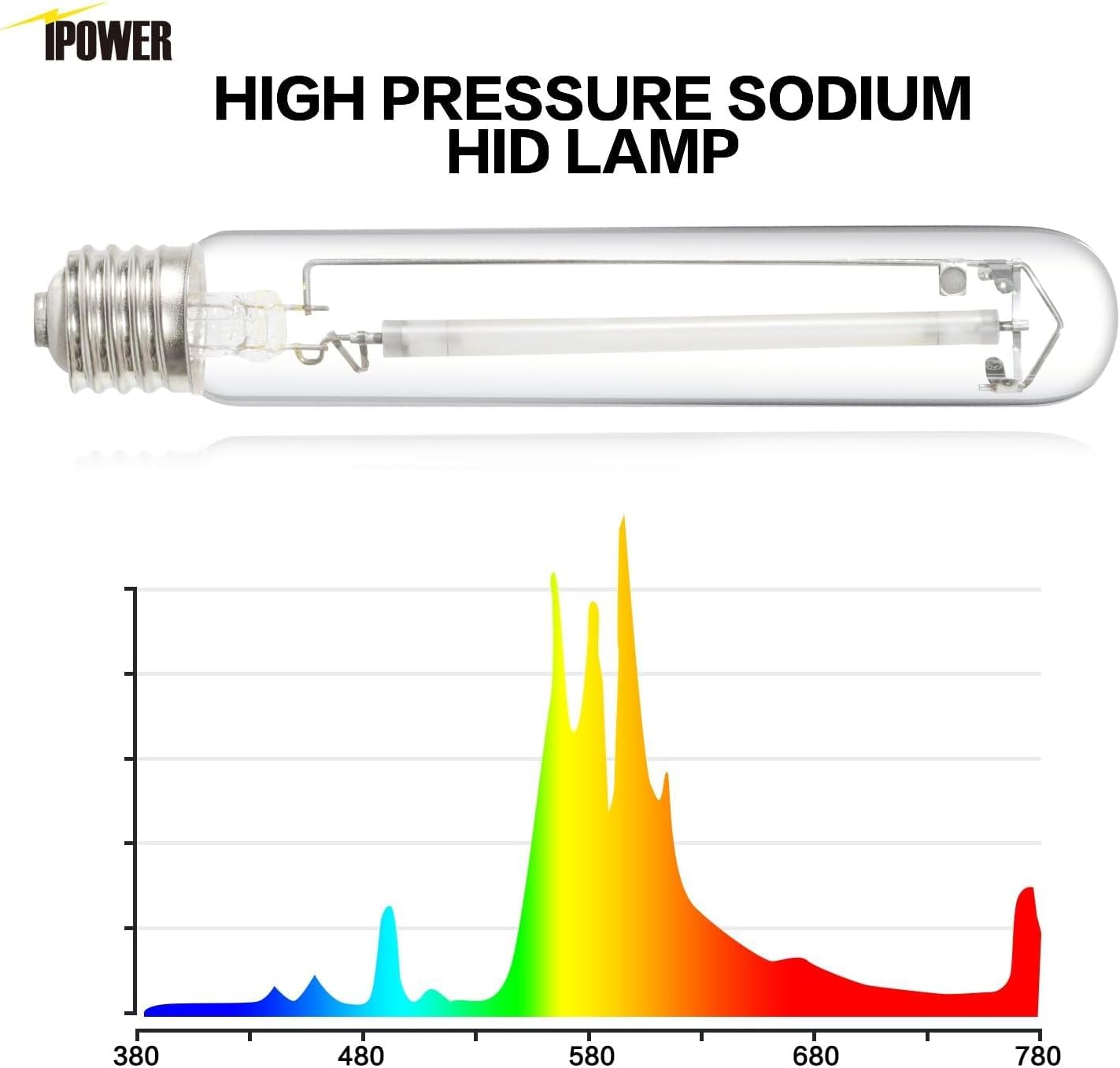 iPower 600W HPS Grow Light Bulb Lamp for Plants Growth, Pressure Sodium Bulb Lamp with High PAR Enhanced Red and Orange Spectrums, CCT 2100K, 4 Pack