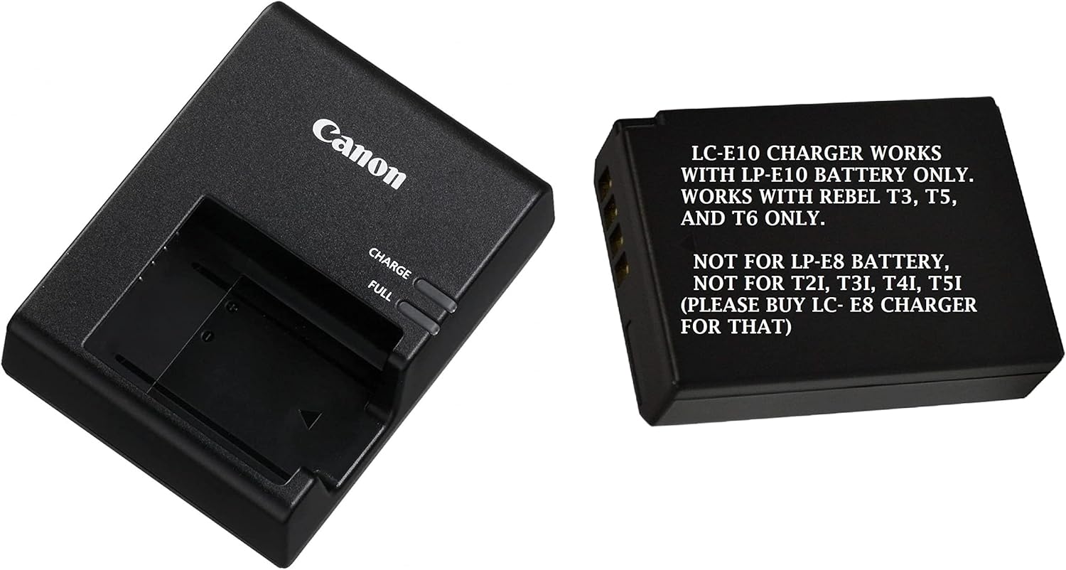 LC-E10 Charger Compatible with Canon LP-E10 Battery EOS Rebel T7 T6 T5 T3 T100 4000D 3000D 2000D 1500D 1300D 1200D 1100D Camera Durable and high quality Easy to carry, travel charge US Standard Plug Package include: 1 X power charger, 1 X Power Cord
