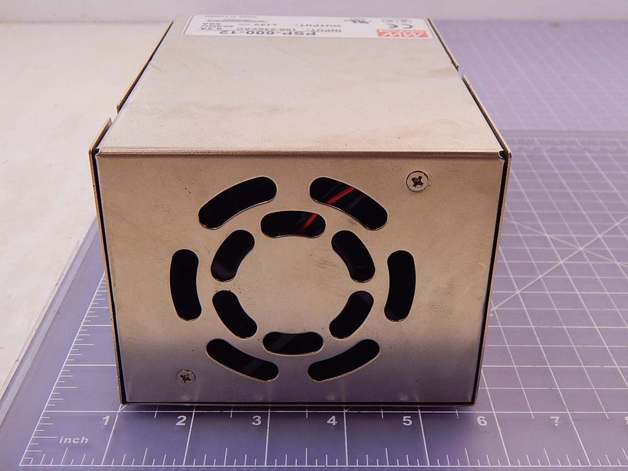 The product type is Mean Well PSP-600-12 Enclosed Switching AC-to-DC Power Supply, Single Output, 12V, 600W, 3.7" H x 4.7" W x 6.7" L. Made in China and manufactured by Mean Well.