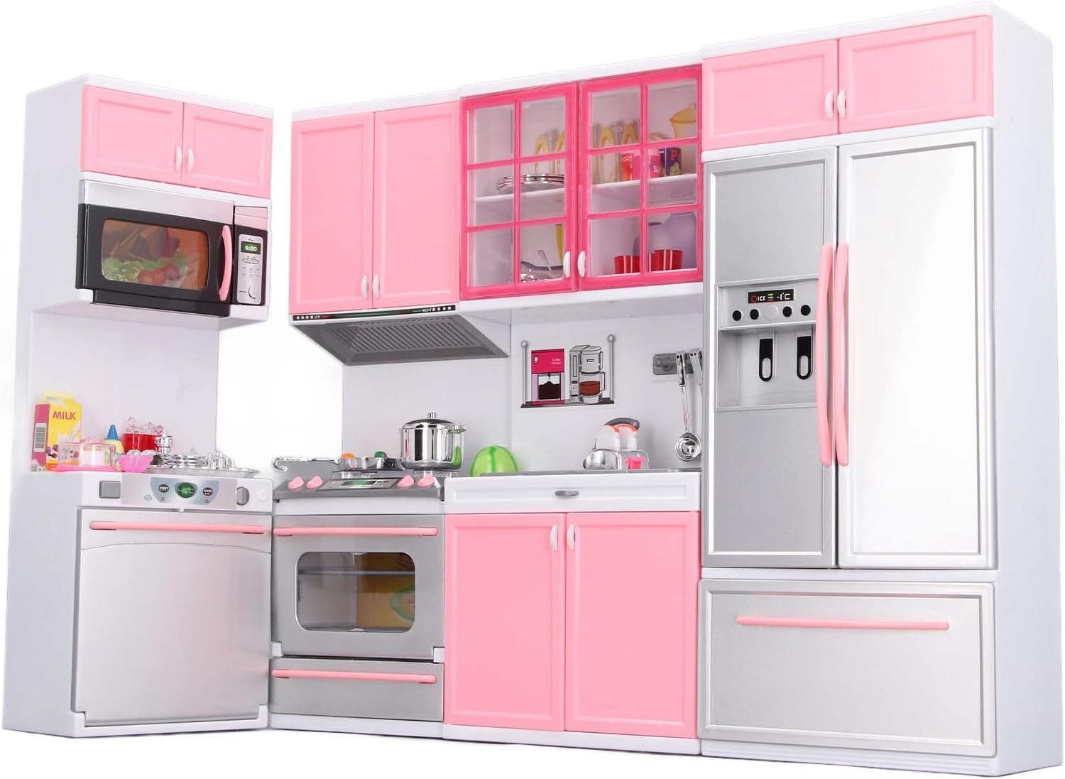 1. Excellent Plastic Material: This kitchen playset is made of excellent quality plastic material, which is durable and able to withstand long hours of children's play. 2. Simulation Design: This play kitchen toys adopts simulation design to simulate the real family kitchen scene, which inspires children's imagination and creativity. 3. Safe And Reliable: This plastic kids play kitchen toy is non and harmless, which gives parents more peace of mind and reassurance. 4. Multifunctional: This kids kitchen playset comes complete with cooking, ice making and refrigerator storage, offering a variety of roles play and play options. 5. Wide Application: This toddler kitchen playset has a wide range of applications and can be used at home, kindergarten, holiday parties and birthdays. Spec: Item Type: Play Kitchen Toys Material: Plastic Battery Type: Kitchen Cabinet Oven All In One Toys 1.5VAAA x 2 ( Shipped Without Battery ) Size: Integrated Kitchen Cabinet Oven Toy: Approx. 32.3 x 10.7 x 7cm / 12.7 x 4.2 x 2.8in Integrated Kitchen Cabinet Microwave Toy: Approx. 32.3 x 10.7 x 7cm / 12.7 x 4.2 x 2.8in Integrated Kitchen Cabinet Washstand Toys: Approx. 32.3 x 14 x 7cm / 12.7 x 5.5 x 2.8in Refrigerator: Approx. 32.1 x 13.9 x 7.9cm / 12.6 x 5.5 x 3.1in How to Use: Use directly. packing list: 1 x Integrated Kitchen Cabinet Oven Toy 1 x Integrated Kitchen Cabinet Microwave Oven Toy 1 x Integrated Kitchen Cabinet Washstand Toy 1 x Refrigerator 3 x Soup Pots 3 x Soup Pot Lids 1 x Pan 1 x Soup Ladle 1 x Spatula 1 x Tray 1 x Toaster 1 x Milk 2 x Carrots 2 x Banana 2 x Lemons 2 x Oranges 28 x Accessories