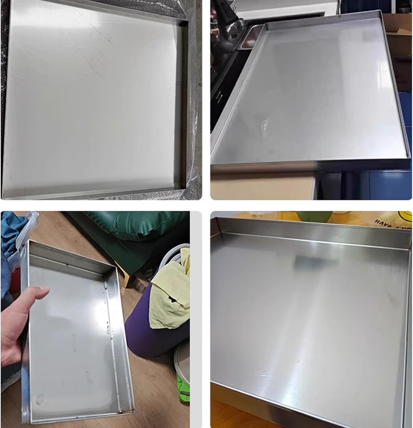 Introducing our AC Water Catcher, an essential solution for preventing water leakage and seepage from outdoor air conditioning units. Crafted from high-quality 304 stainless steel with a thickness of 0.8mm, this drip tray combines durability and functionality. With a height of 5cm (2in) and available in sizes ranging from 20cm to 120cm (8in to 47in), it is designed to fit various AC units seamlessly. Our stainless steel drip tray not only serves its primary function but also boasts a unique noise-reducing design that minimizes dripping sounds. This makes it an excellent choice for indoor and outdoor potted plants, allowing you to water them quietly without disturbing your neighbors. Versatile and practical, this drip tray adapts to multiple scenarios: - **Desktop Organizer**: Keep your workspace tidy by storing laptops, documents, and more, while the anti-spill design ensures a clean surface. - **Gardening Tool Storage**: Organize shovels and gardening tools with ease; the weather-resistant steel withstands outdoor conditions effortlessly. - **Grill Base**: Capture grease from grills and smokers, with a smooth surface that simplifies cleanup. - **Aquarium Base**: Provide stable support for aquariums and glass containers, helping to prevent damage at the source. - **RV/Travel Tray**: Lightweight and portable, it catches kitchen drips or stores cooking utensils, making it ideal for travel. - **Garage Tray**: Perfect for storing in-car supplies; the raised edge effectively contains spills and messes. - **Craft Tray**: Manage materials like clay, with a non-porous surface that allows for quick cleaning. - **Laundry Protector**: Collect leaks from washing machines and dryers, with rust-proof steel ensuring long-lasting use.