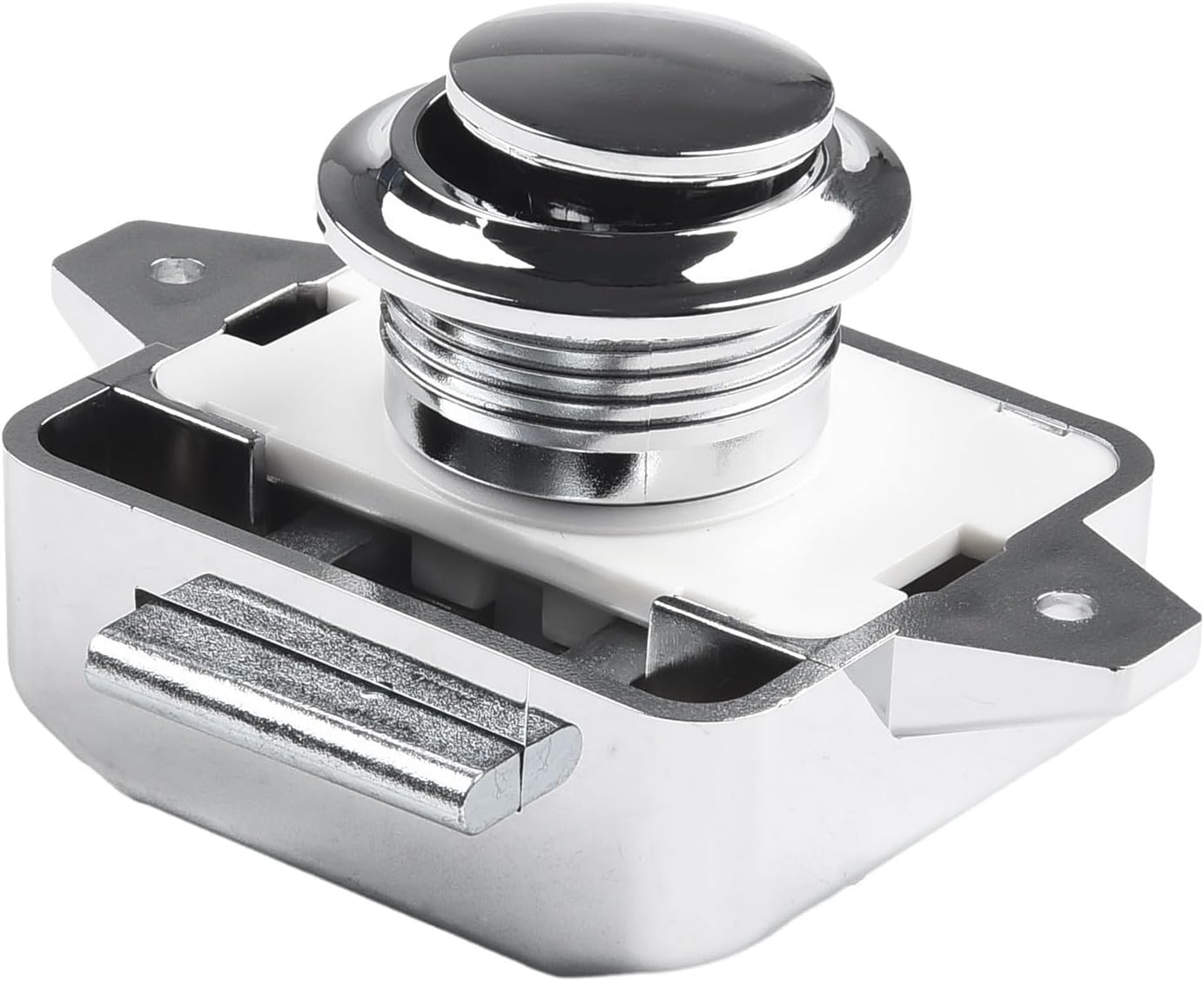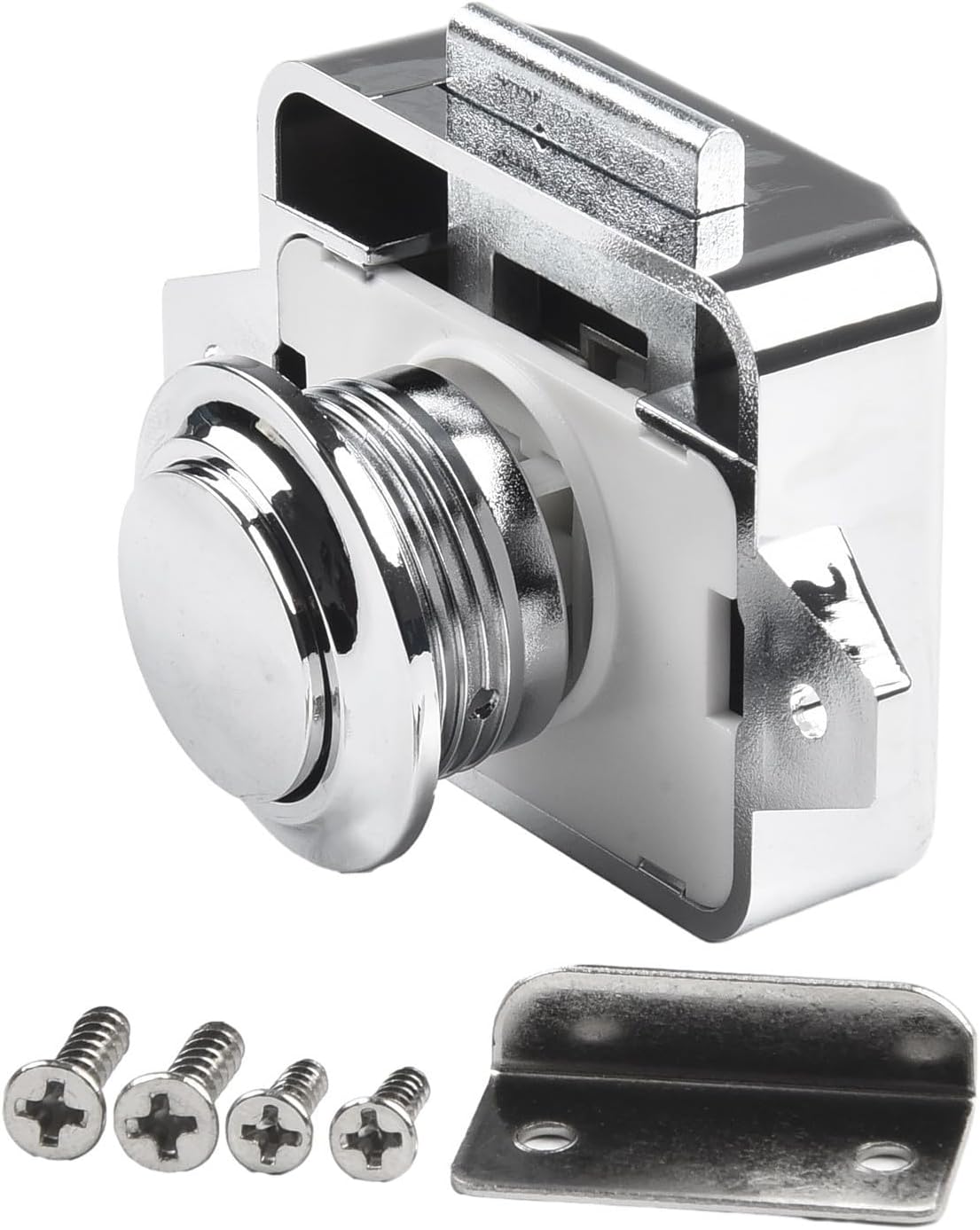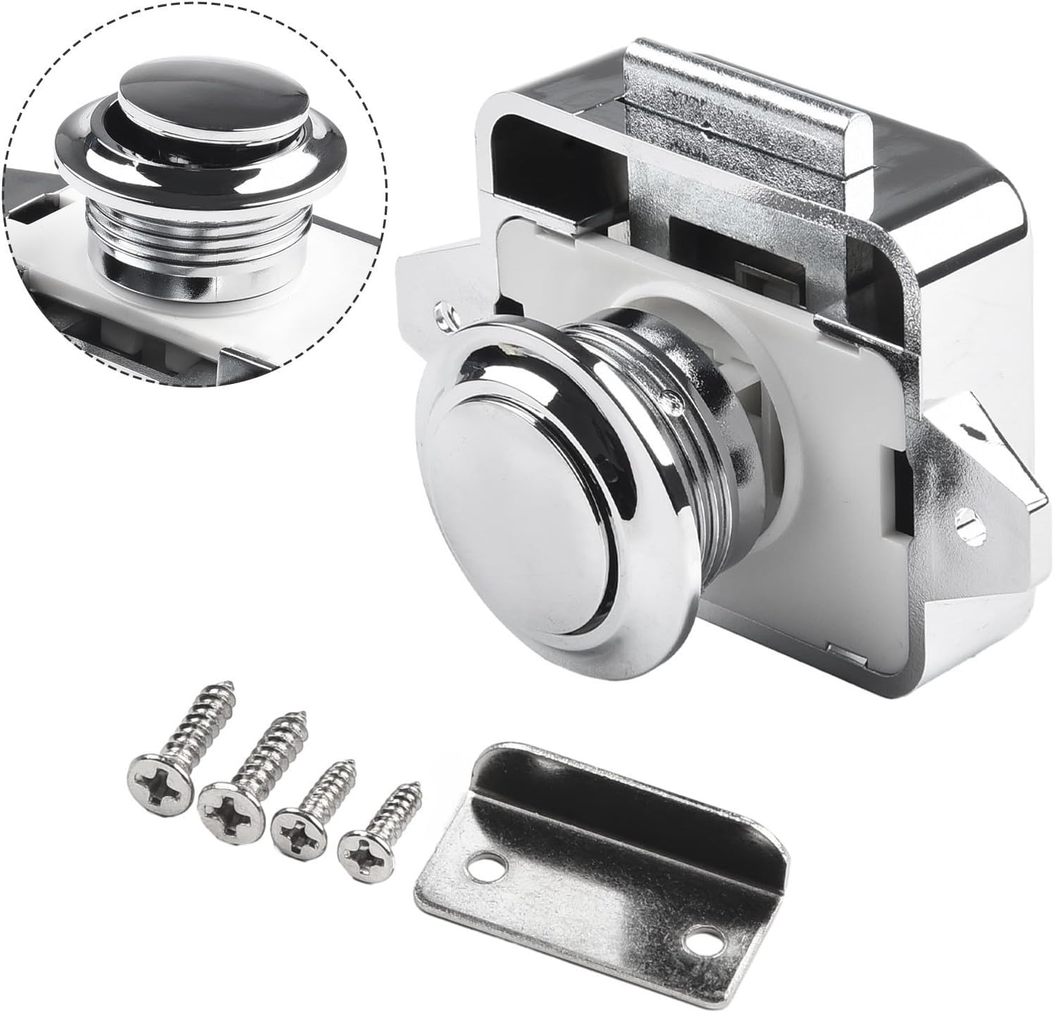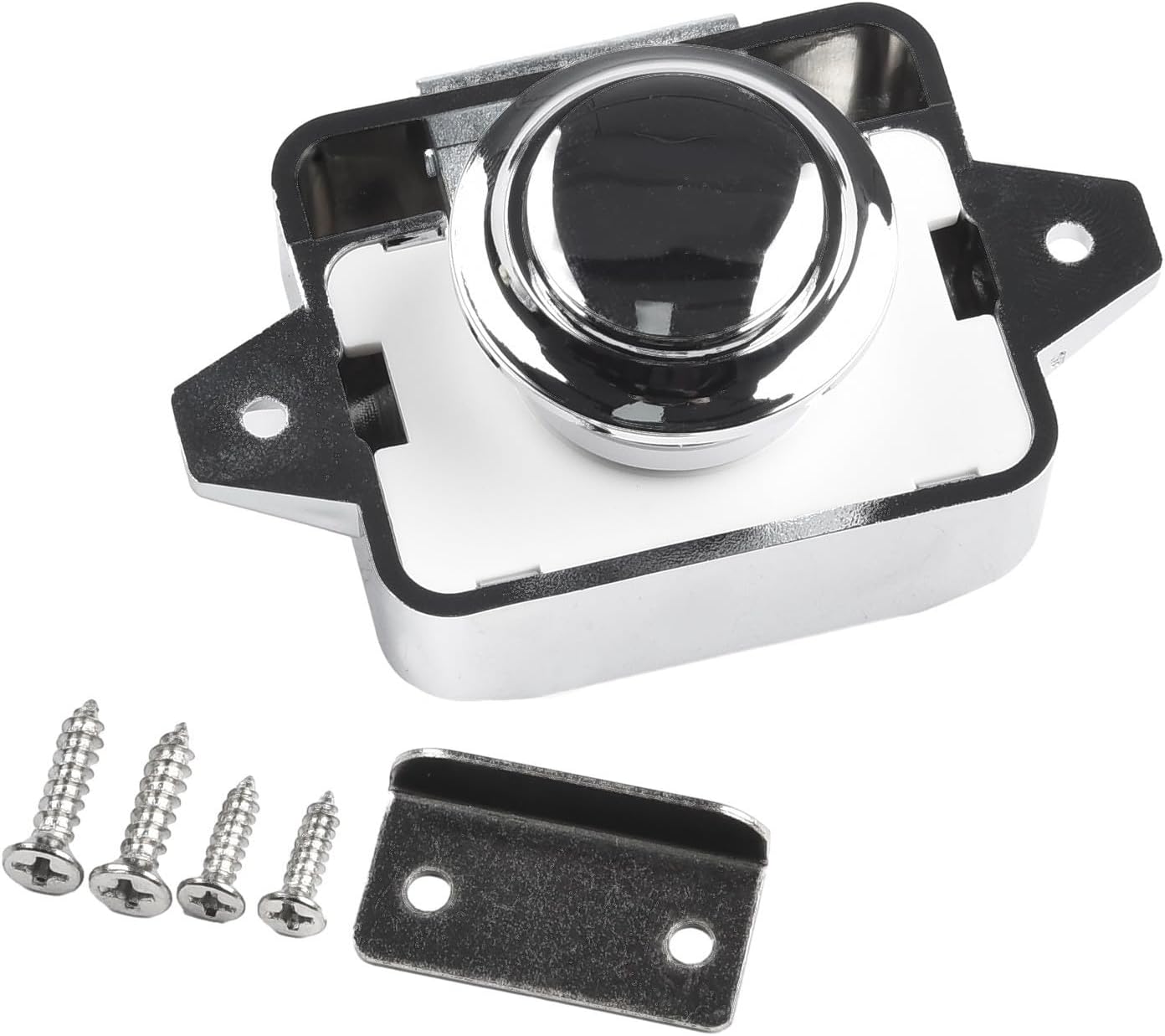 Features:*Made of Zinc alloy material, and practical to use*This lock is a new type with handle button type ship, yacht, RV.*The lock itself with both locking function also handle function.*Suitable for all kinds of furniture has the beautiful appearance, color ele, simple installation, convenient to use.*To avoid all kinds of yacht, boat, RV shaking in the process of for moving and cause indoor furniture cupboard door open.Specifications:Material: Zinc alloyCut Hole Diameter: 26mm/1.02inPackage Contents:1 x Button Catch Lock1 x L-shaped plate4 x Screws