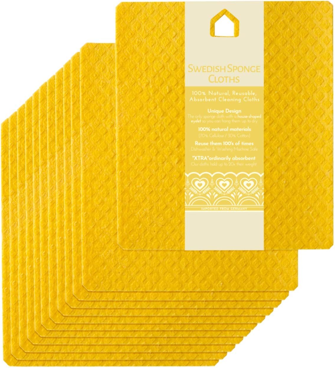 Dear Kitchen Sponge, We've had a good run. But it's time to replace you with a reusable, sustainable, and eco friendly kitchen product that just makes more sense.P.S. You can take the paper towel roll with you too. No need for paper towels anymore.Today Was The Last Time You Had To Use A Low-Quality Sponge & Super-Expensive Paper Towels. The deltaXTRA Swedish dish cloths set is here to help you save effort, money, and the environment. All while keeping your bathroom, kitchen, and dishes squeaky clean!Top 5 Reasons To Choose Our Swedish Sponge Cloths: ✔️ More Absorbent Dish Towels: unlike paper towels or even regular sponges, our Swedish cloths are super-absorbent, which will make cleaning up spills or wiping down your kitchen countertop a breeze.✔️ One Set Of Dish Towels, 100+1 Uses: when it comes to versatility, our multipurpose Swedish cellulose sponge cloth set is unrivaled.✔️ Unparalleled Durability: the word "reusable" cannot even begin to describe the durable design of our Swedish sponge dishcloth set. Use them and reuse them 100's of times.✔️ Budget-Friendly Paper Towel Alternative: cover your cleaning needs for up to a whole year with our set of long-lasting cellulose sponge cloths.✔️ Eco Friendly Sponge Set: made from renewable raw materials, our earth-friendly Swedish dishcloths will allow you to do your part for the environment.And The Best Part? These mom-approved household cleaning cloths come in 4 vibrant colors and feature a handy house-shape eyelet for easy hanging and air drying.Don't Hesitate! You'll Wonder How You Ever Got Along Without Them!Click "Add To Cart" NOW - Get Rid Of Your Sponge Once And For All!