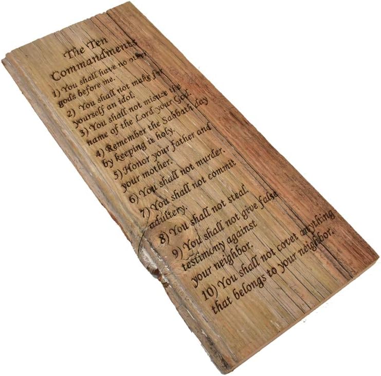 The Ten Commandments barnwood sign from Whitetail Woodcrafters is a unique way to decorate your home or cabin. These rustic signs are handcrafted in our shop from barnwood from an over 100 year old barn for a quality and character you won't find anywhere else. The heavy duty metal hanger on the back makes hanging your new sign quick and easy. ***DISCLAIMER: THIS PRODUCT IS MADE FROM AUTHENTIC RECLAIMED BARNWOOD. EACH SIGN WILL VARY IN COLORATION, DIMENSION, AND CHARACTERISTICS AND MAY CONTAIN NAIL HOLES, KNOTS, PAINT REMNANTS, AND OTHER UNIQUE CHARACTERISTICS DUE TO THE ELEMENTS IT WAS EXPOSED TO. EACH PIECE OF BARNWOOD IS KILN DRIED PRIOR TO BEING MADE INTO A PRODUCT. THERE WILL BE NO RETURNS OR REFUNDS FOR AUTHENTIC BARNWOOD CHARACTER. Dimensions of the Ten Commandments barnwood sign are approximately 18" x 7".