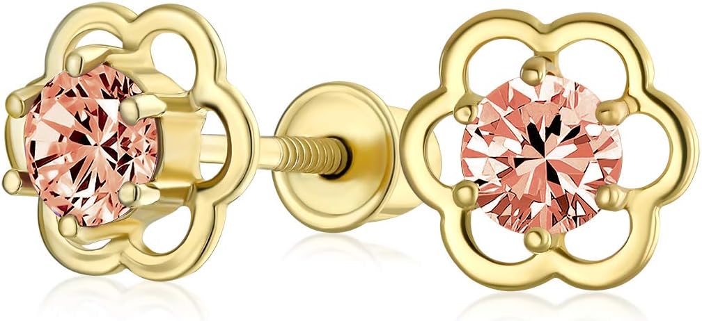 These stunning 14k yellow gold flower stud earrings are perfect for everyday wear. Featuring a 3mm CZ, they sparkle beautifully. The screw back post ensures secure, comfortable wear. An enchanting gift for any friend with a March birthday.