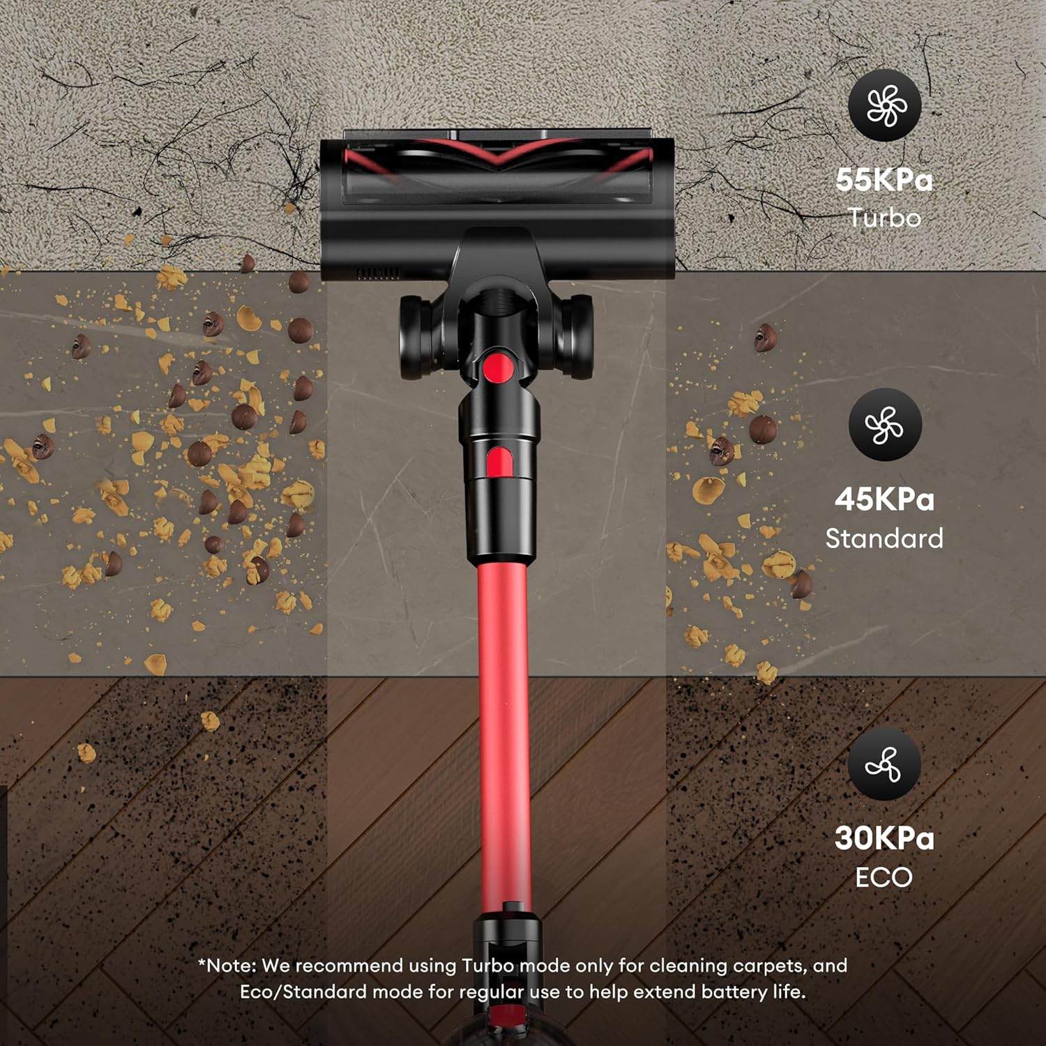 | Other Special Features of the Product | ➤Cordless➤50Kpa high suction➤60-Mins Runtime➤180°Bendable Wand➤Anti-tangle Brush➤Green Light➤Charging Wall Mount➤6-Layer Filtration➤LED Display |