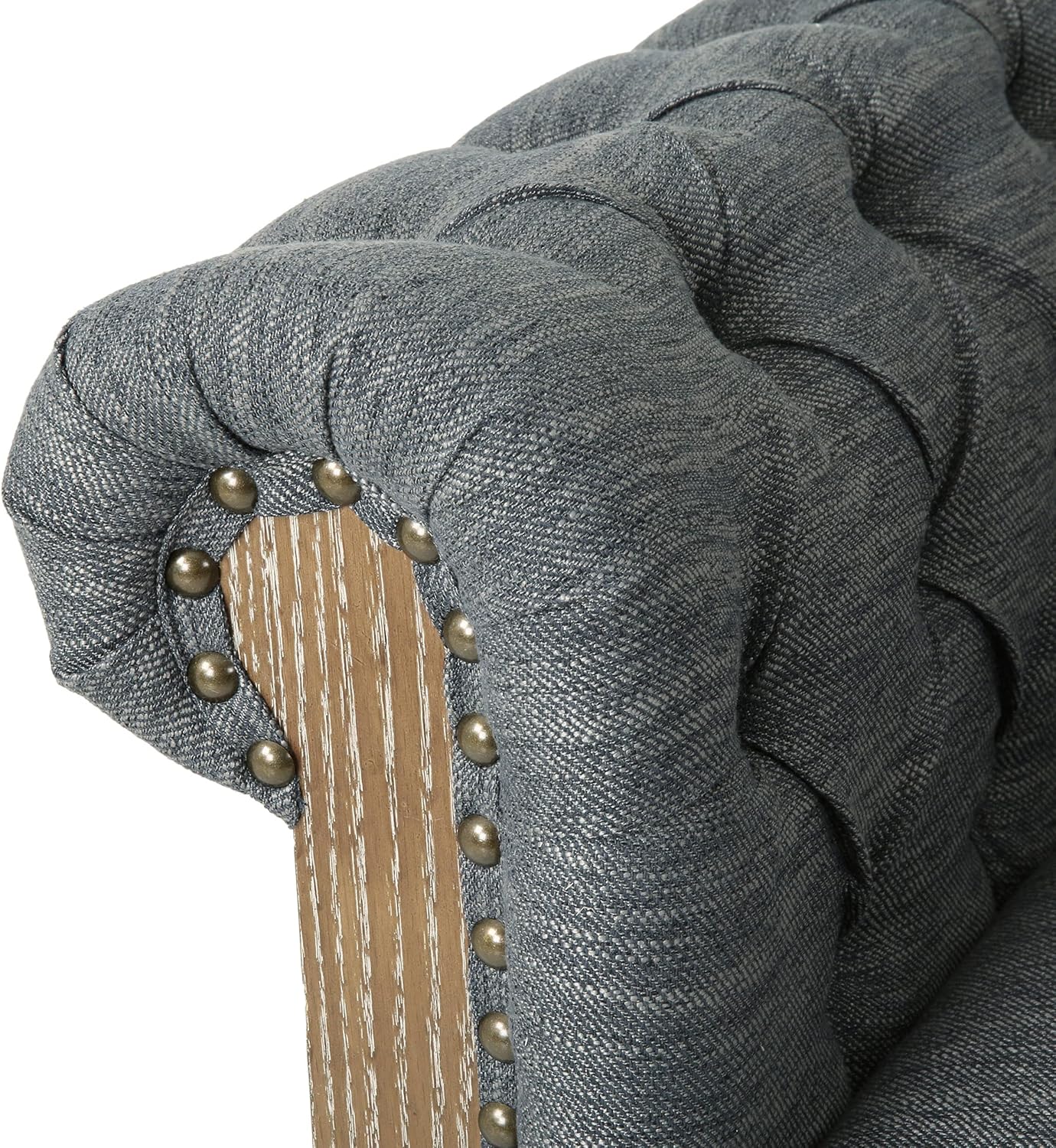 Sensible seating and sophistication come together to elevate your home decor. Our Chesterfield inspired club chair is the ideal addition to any living room with its classic design and traditional elements such as deep button tufting, scrolled tuxedo arms, and nailhead accents. Featuring plush upholstery and a subtle hourglass shape, this chair stands as a streamlined statement piece that can change the whole flow of your living room. Finished with beautifully turned legs and rustic birch wood accents, our club chair provides an elegant touch to any room.Material: FabricFabric Composition: 100% PolyesterLeg Material: Birch WoodMultiple Color OptionsFrame Finish: Dark BrownAssembly RequiredDimensions: 33.00 inches deep x 39.00 inches wide x 28.00 inches highSeat Dimensions: 23.00 inches deep x 21.50 inches wide x 18.20 inches heightArm Height: 28.00 inchesWeight Capacity: 300 lbs